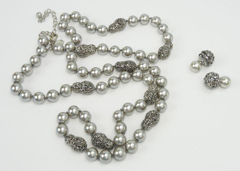 Collectibles by Adrienne Grey Pearl Bead & Hematite Rhinestone Necklace & Earring Set