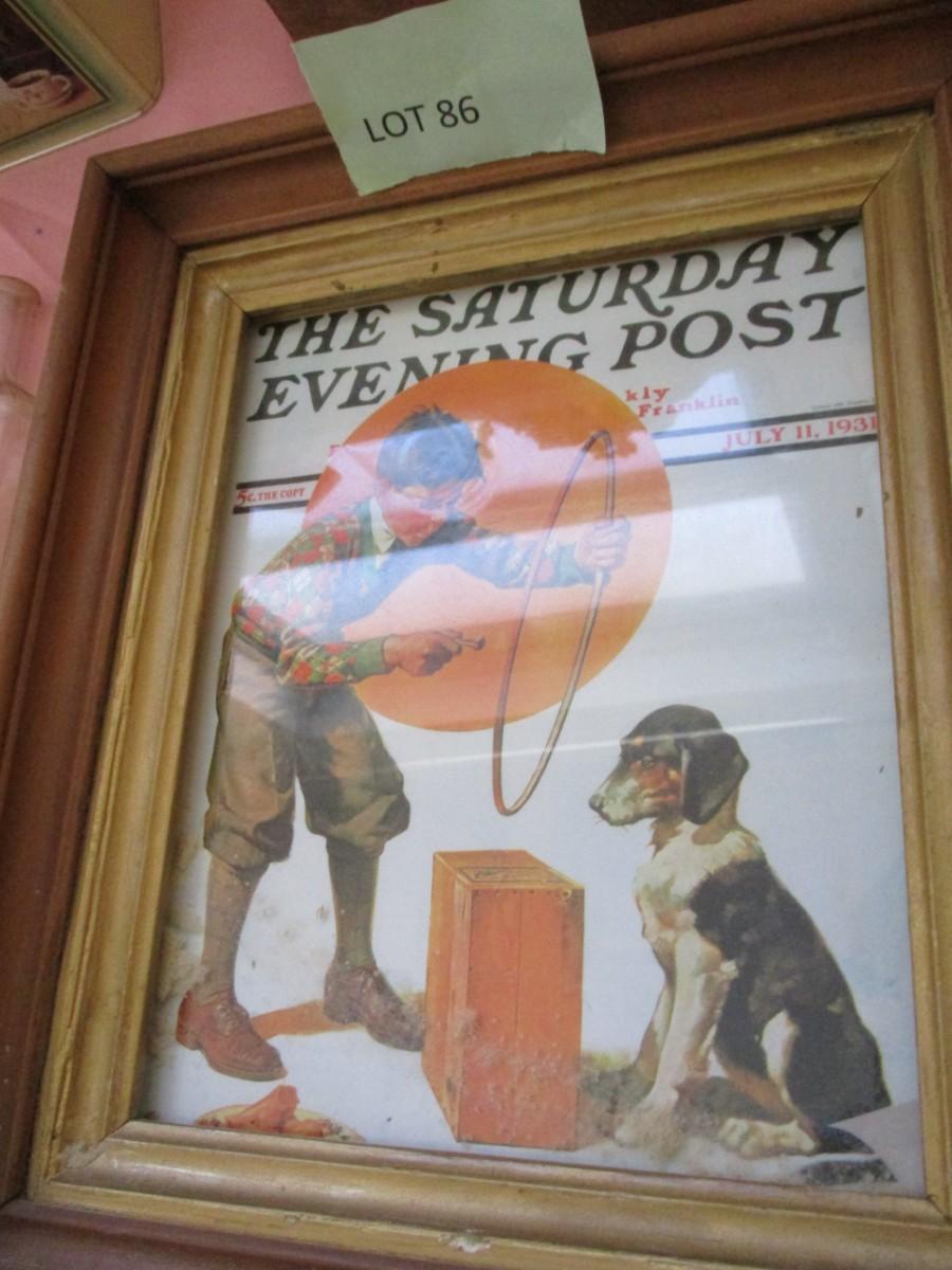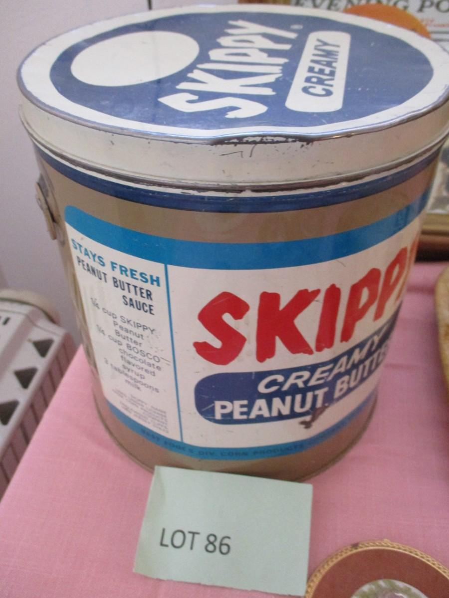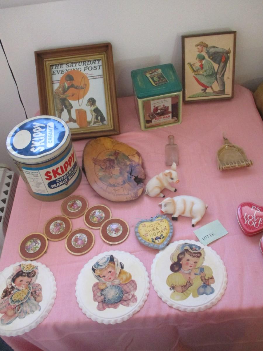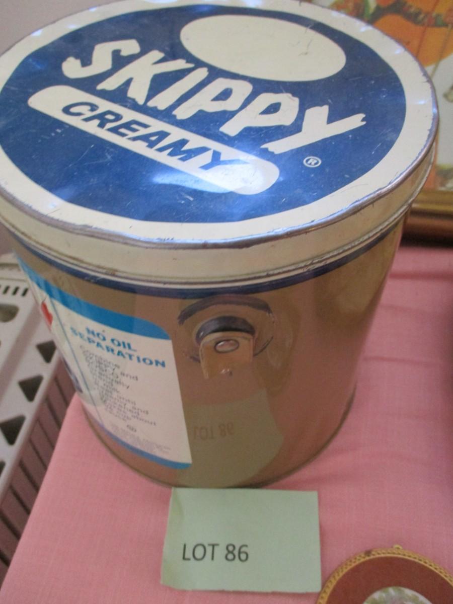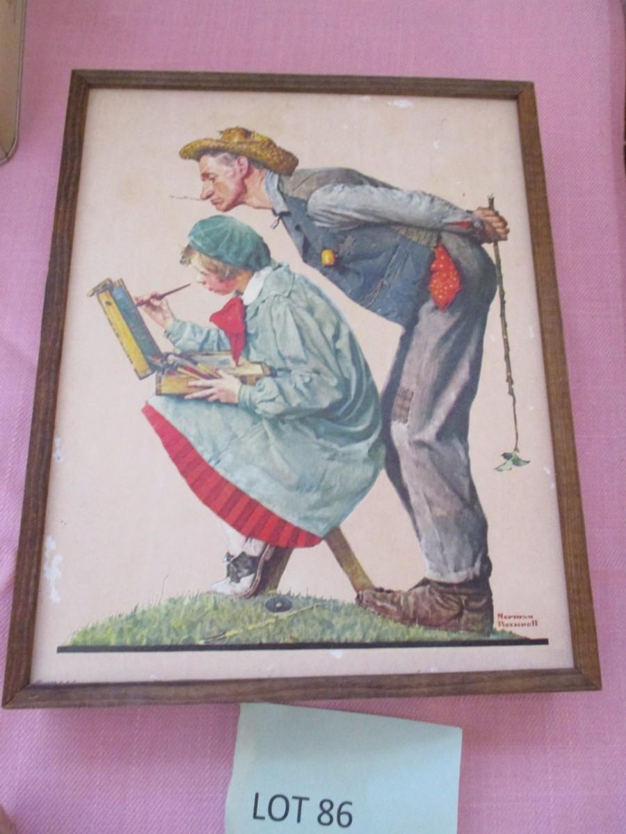 Large Skippy tin can, Decorative Petrified wood, Wall decor, framed Norman Rockwell,
