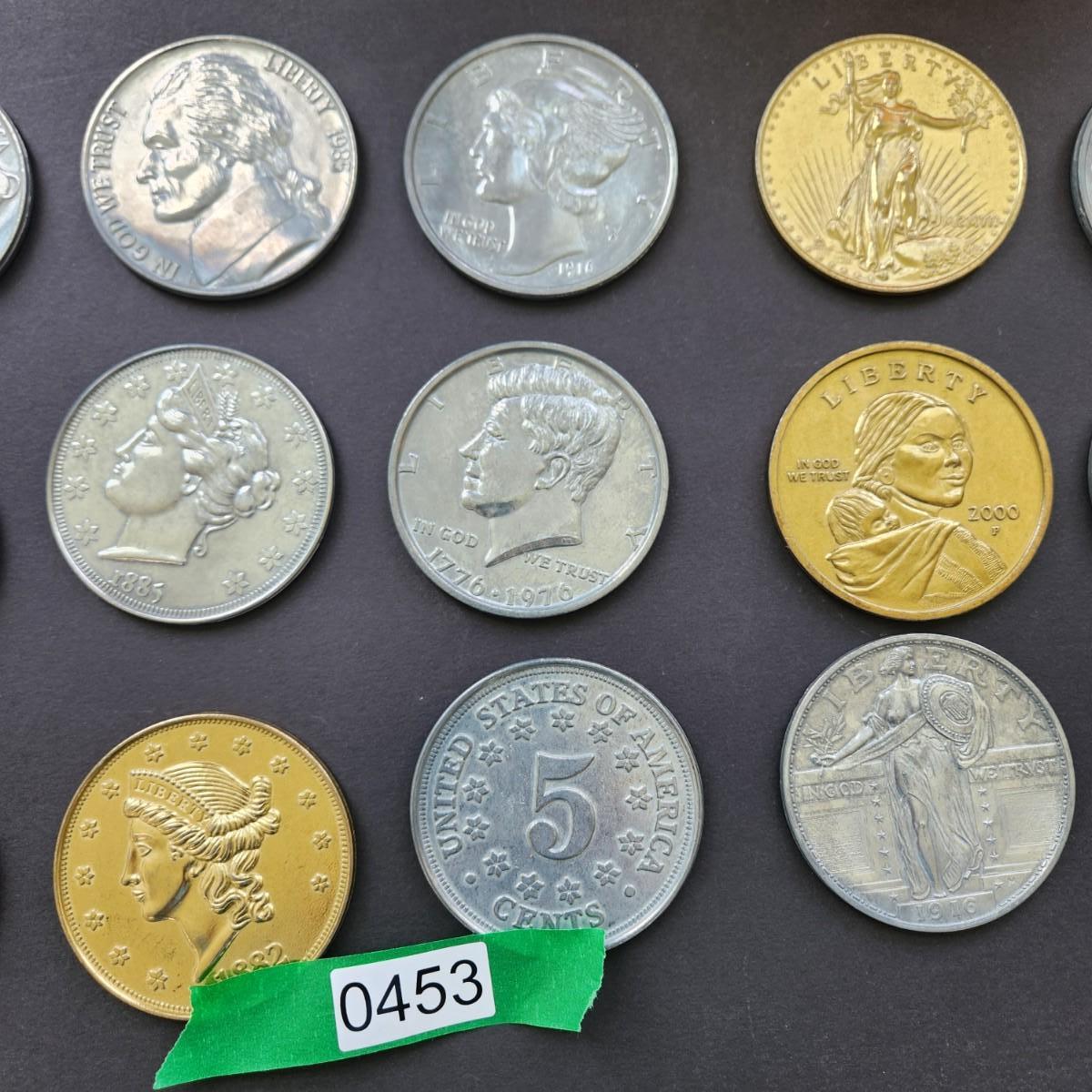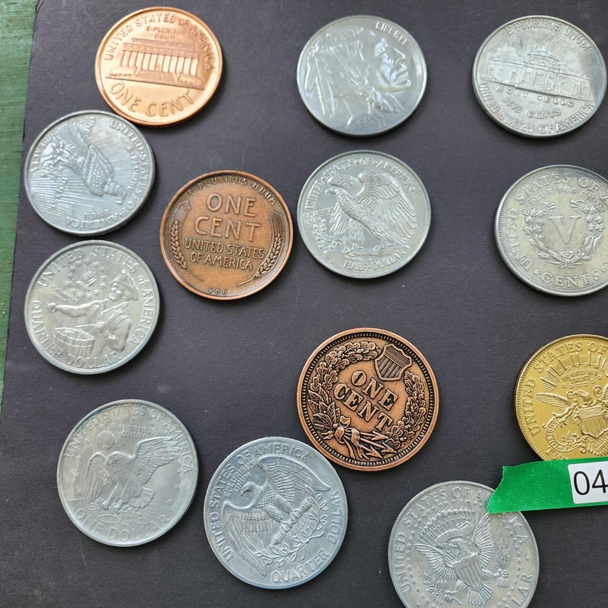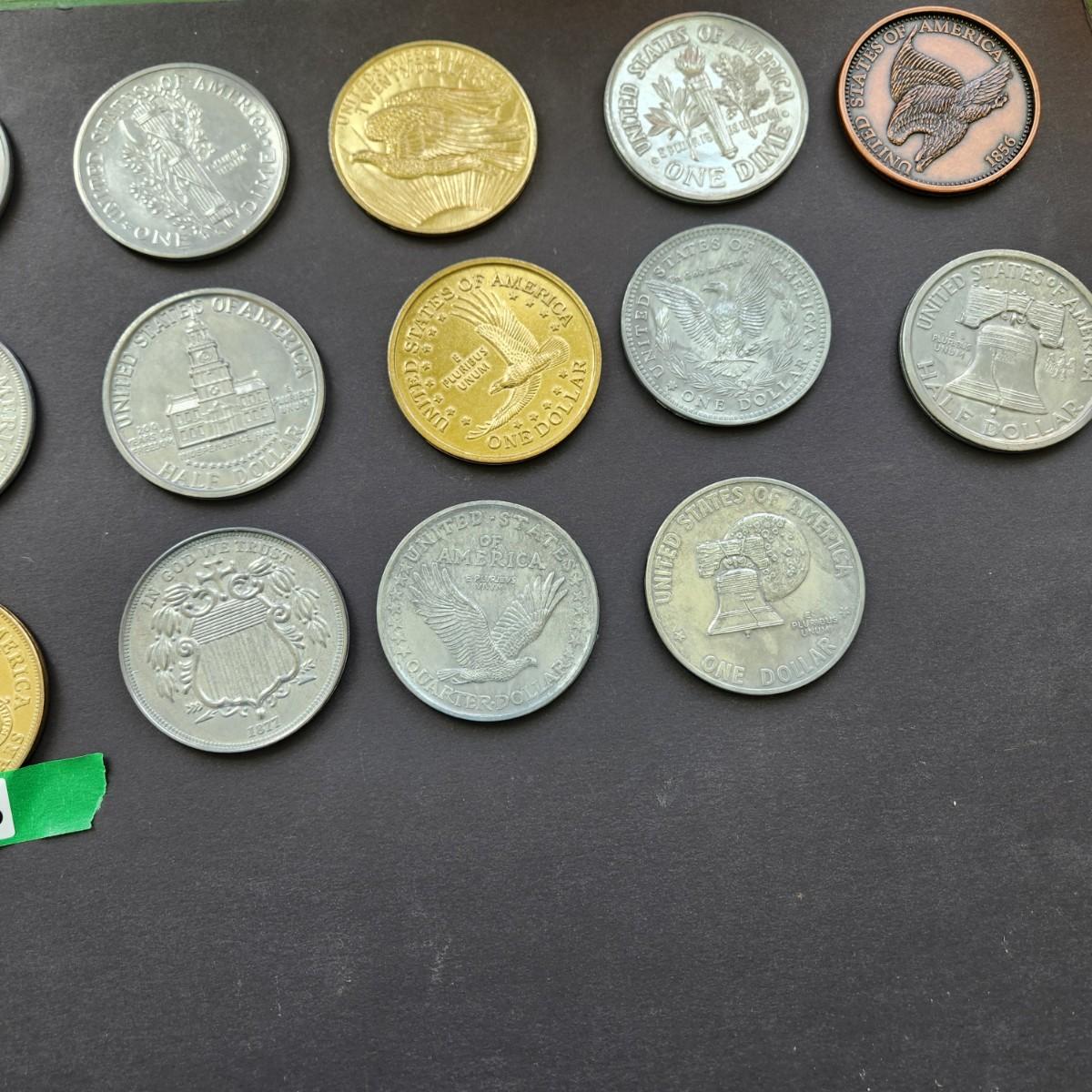 Collection 24 US Metal Oversize Jumbo Novelty Coins 3" Dia Very Detailed