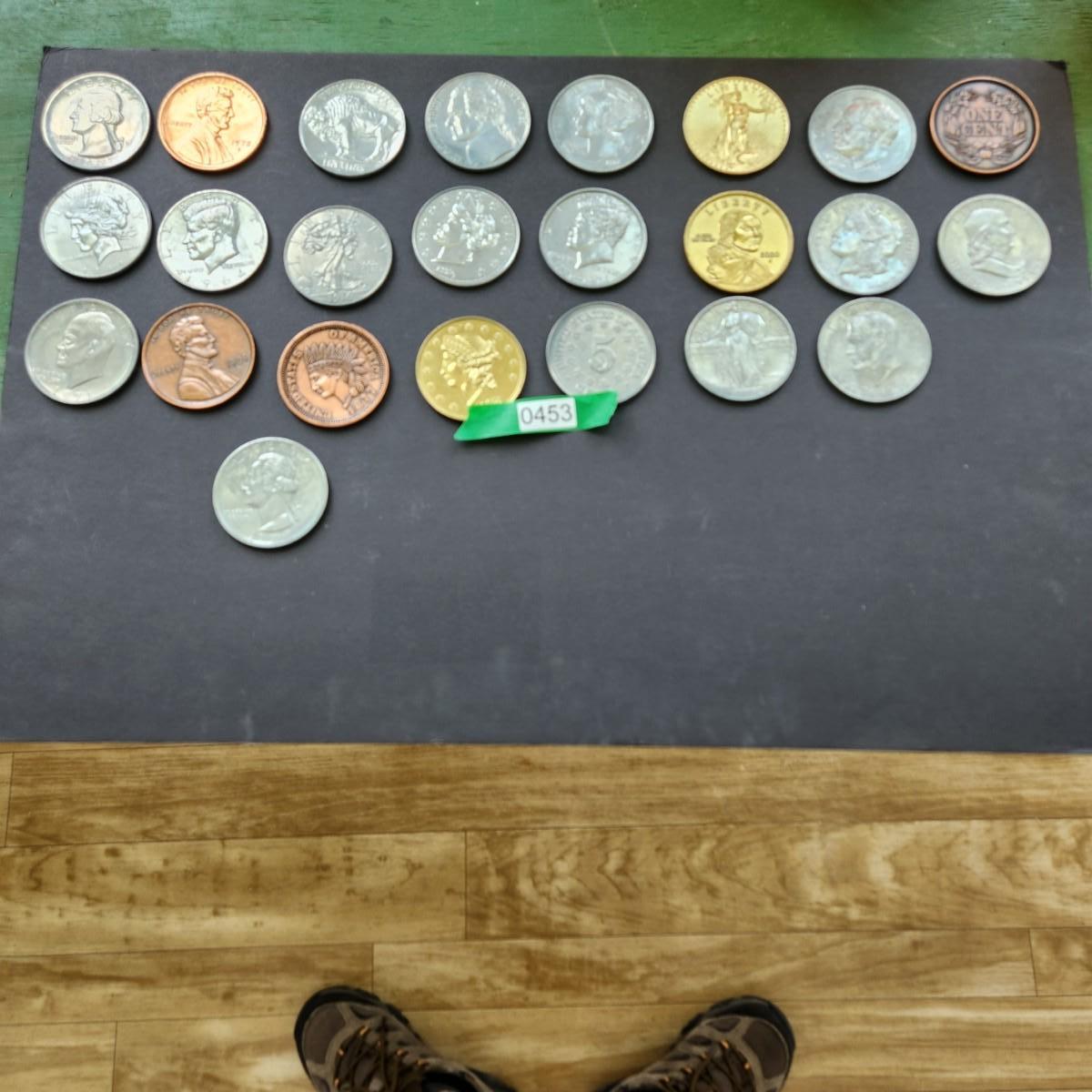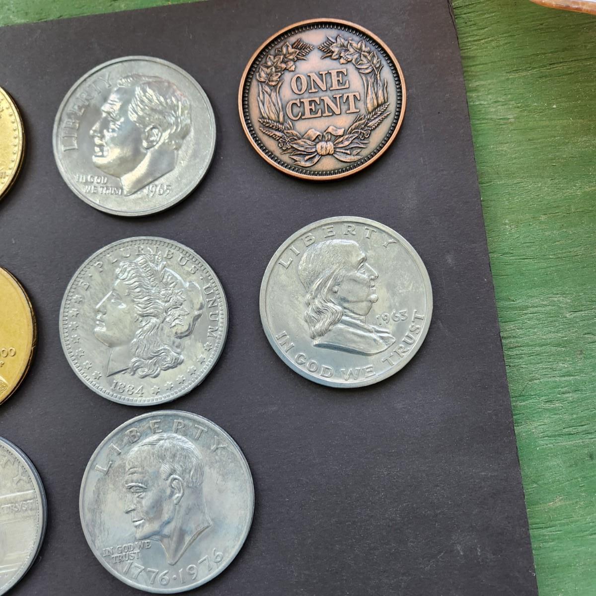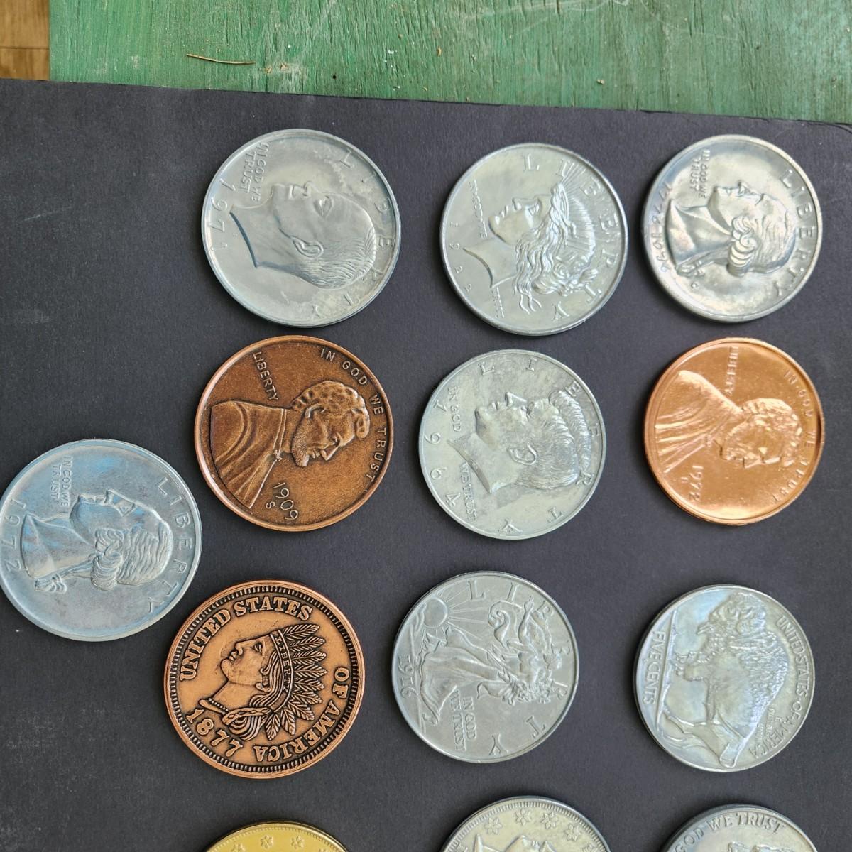 Collection 24 US Metal Oversize Jumbo Novelty Coins 3" Dia Very Detailed