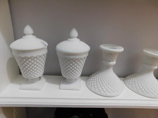 Collection 6 pc Milk Glass Mostly Diamond Surface