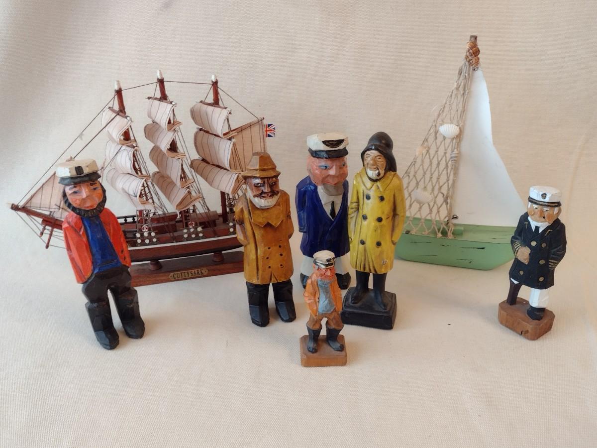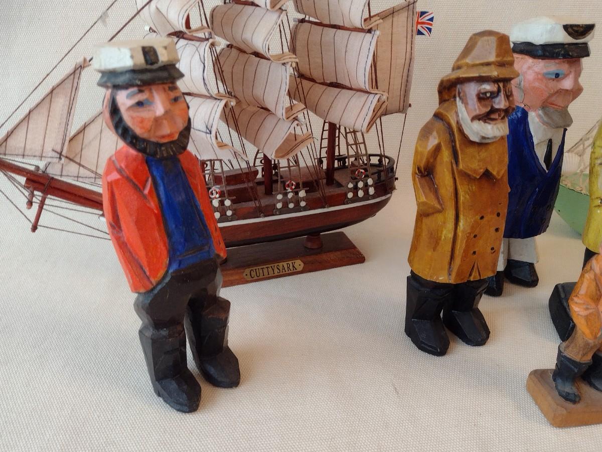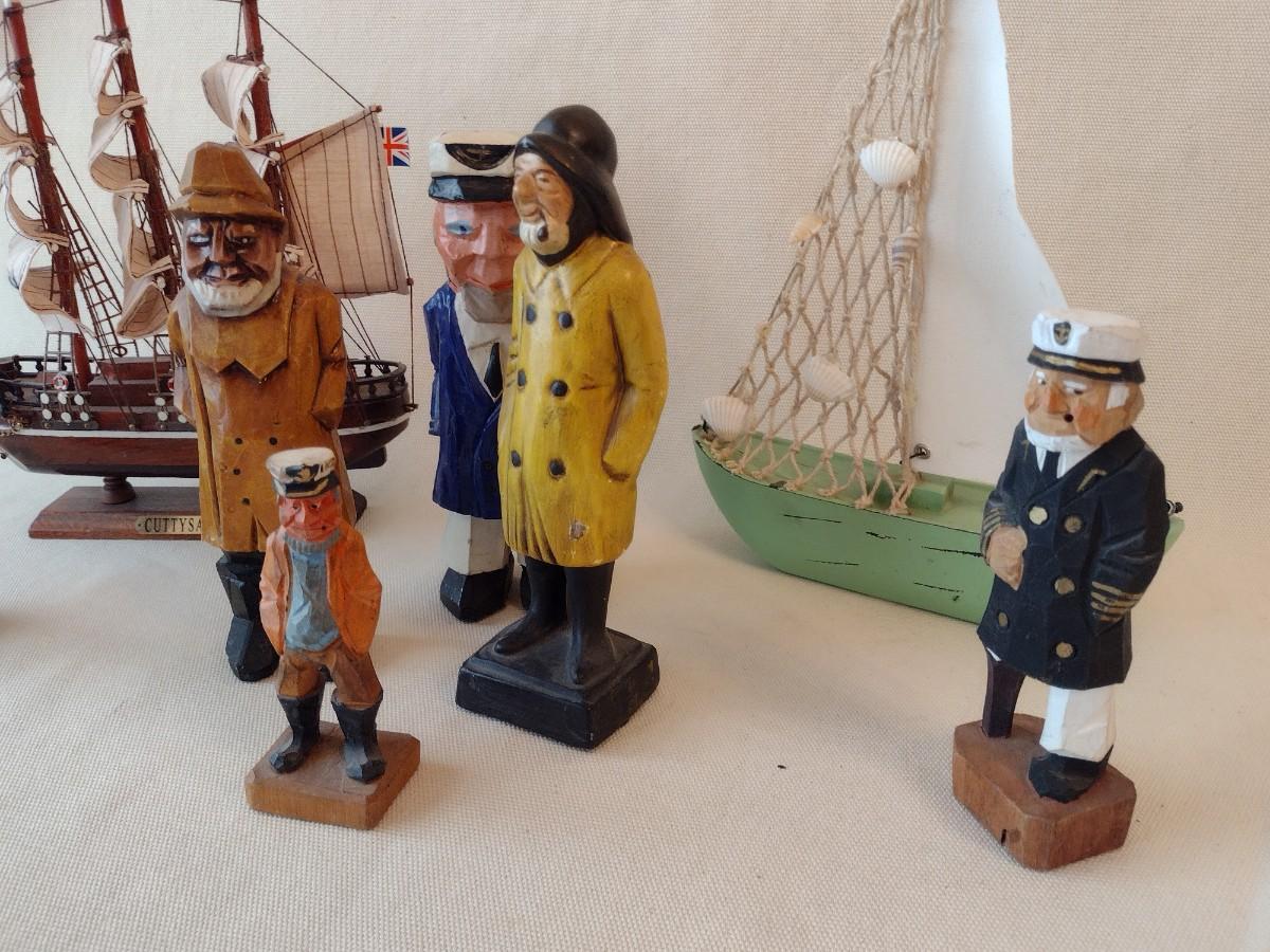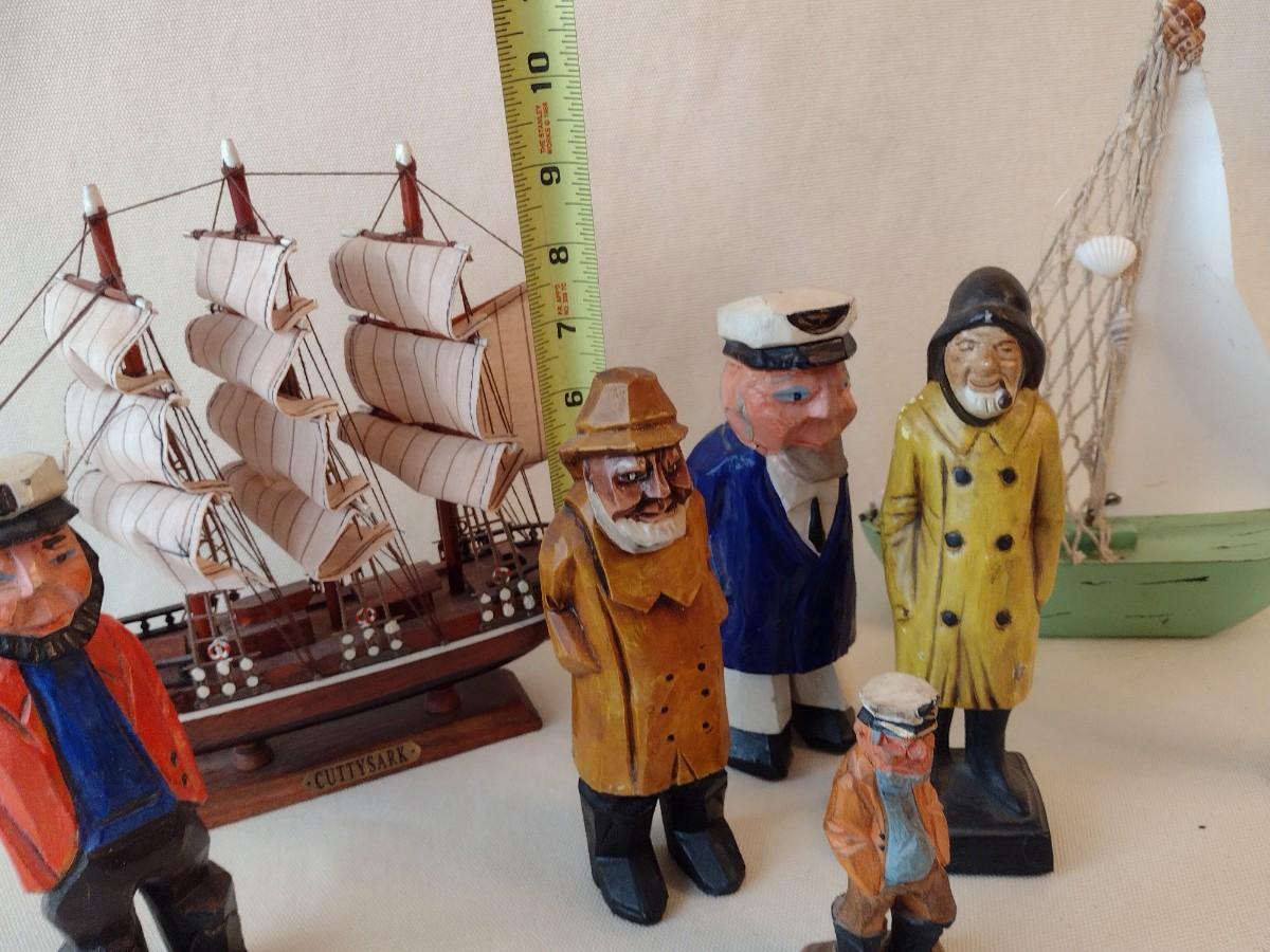 Collection of Mostly Wood or Resin Carved Seafaring Items
