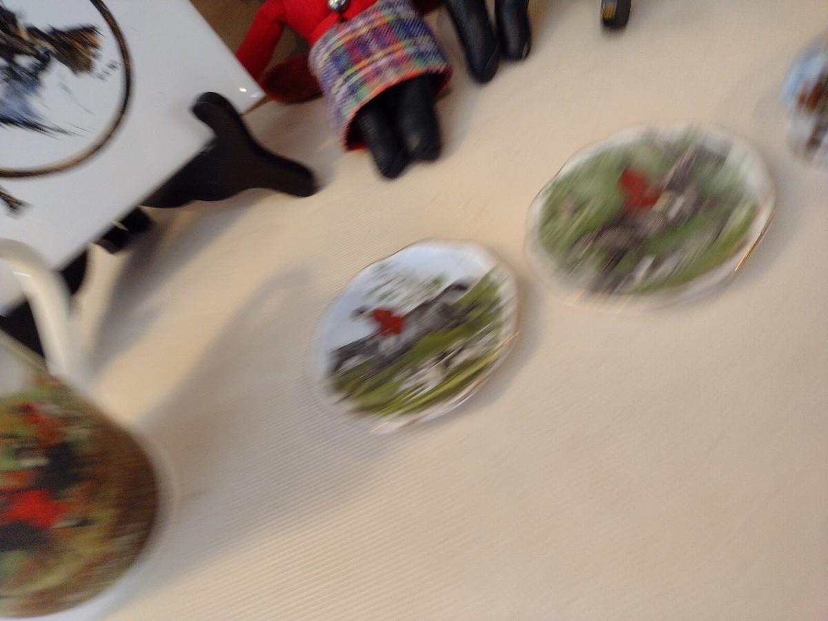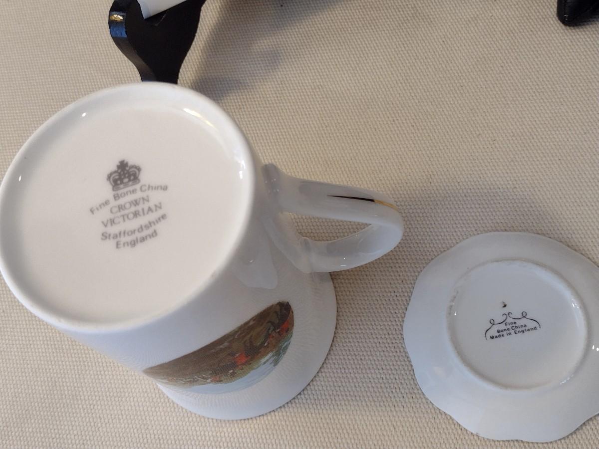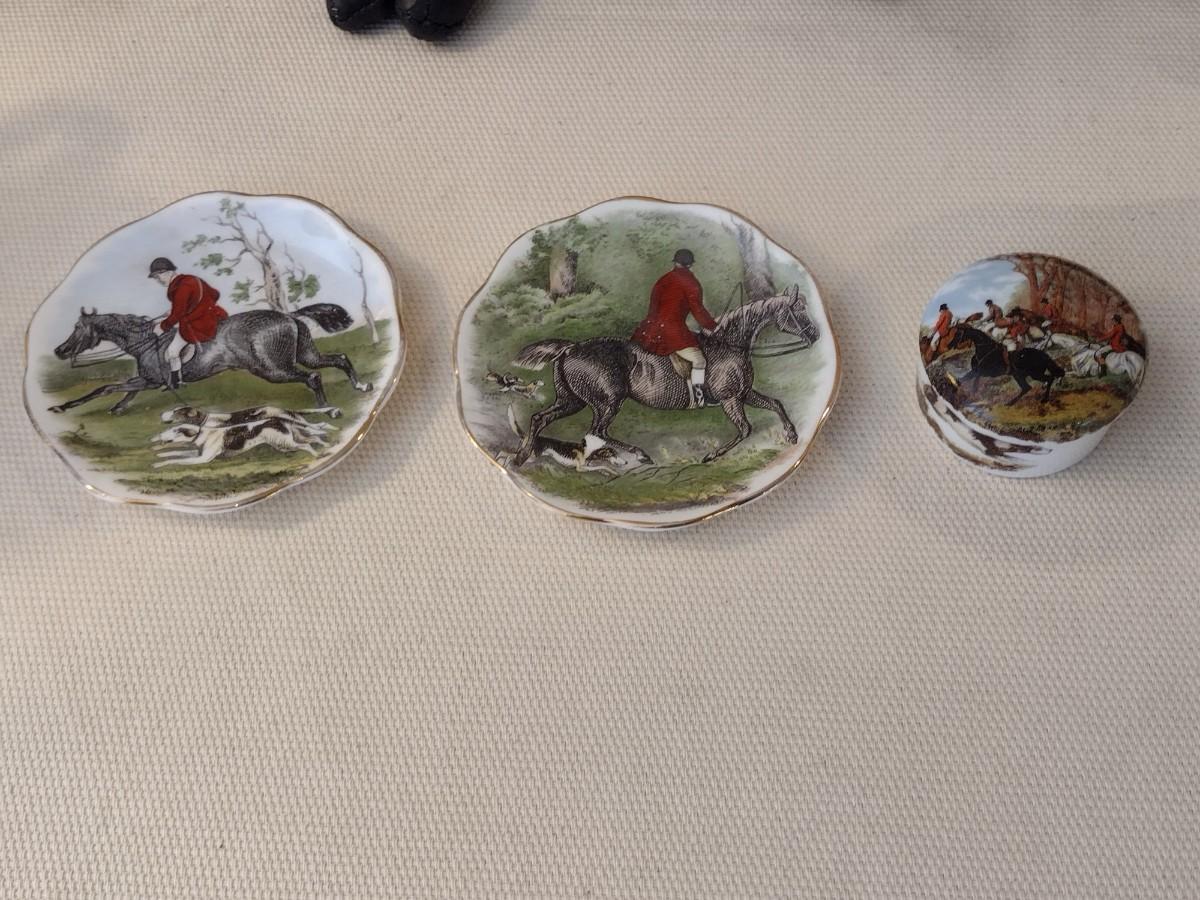 Collection of Hunter Themed Items includes Painted Tiles, Crown Victorian Mugs, and Fine China Plates