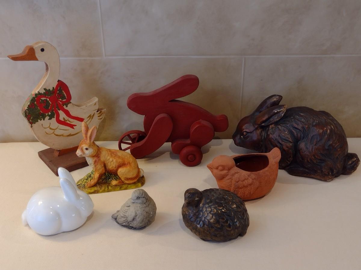 Collection of Wood, Ceramic, and Pottery Animals
