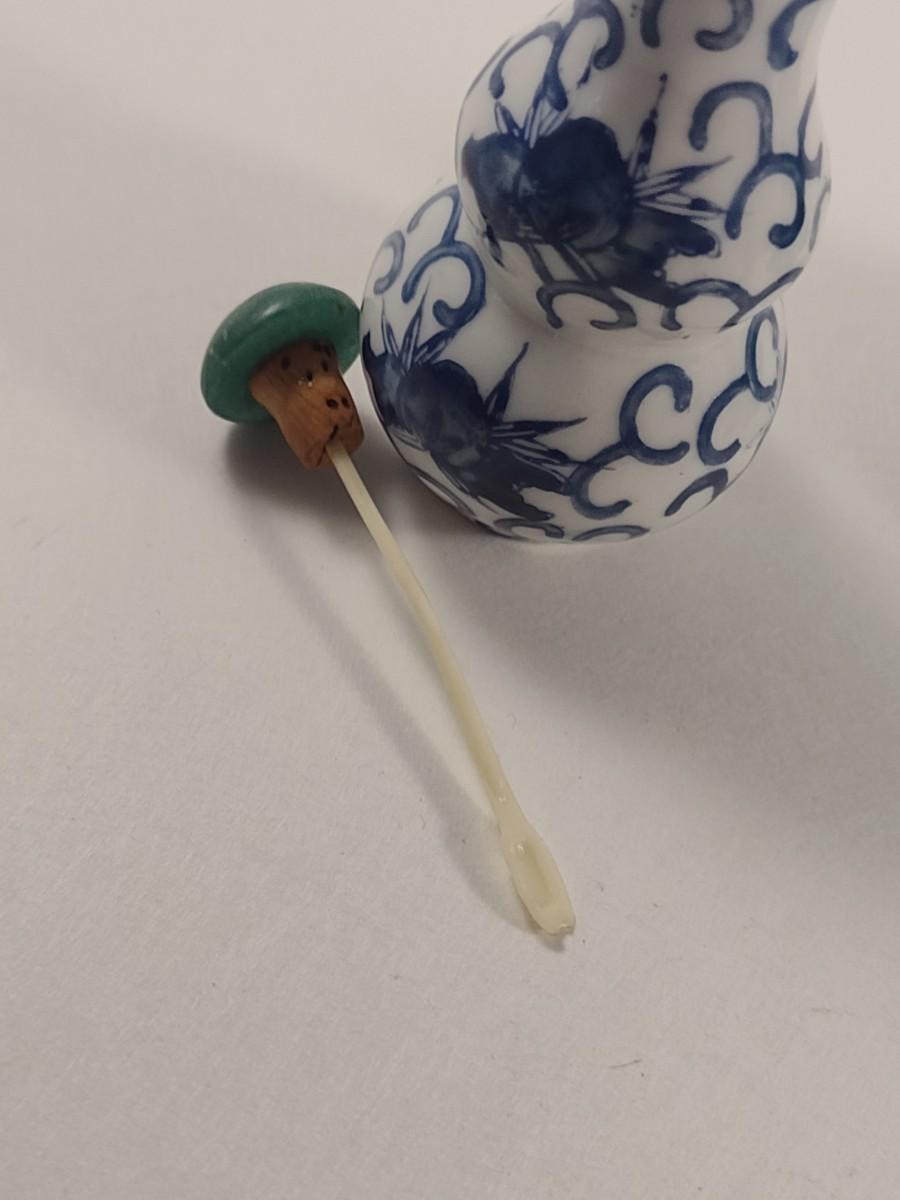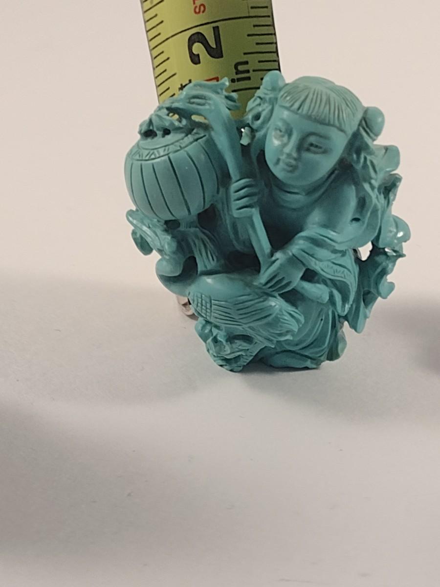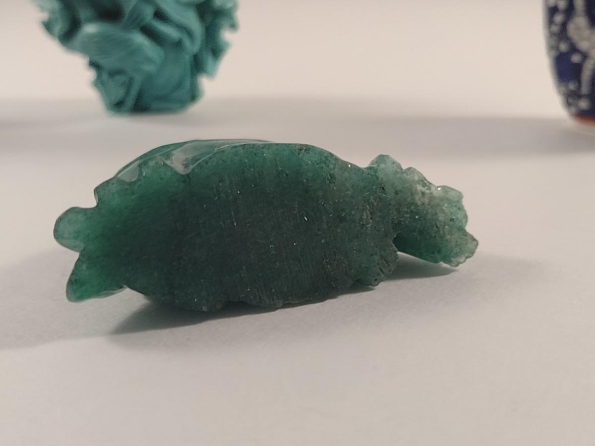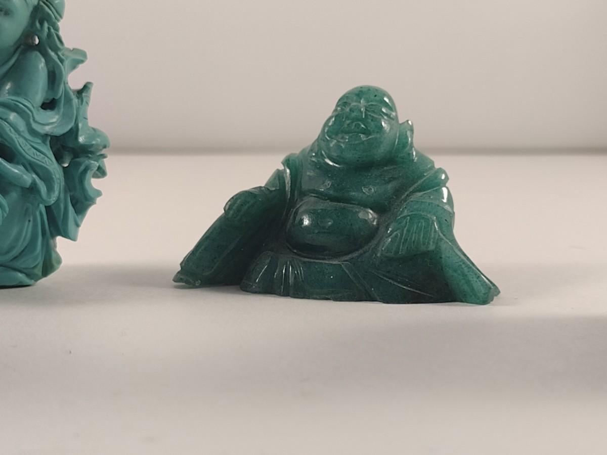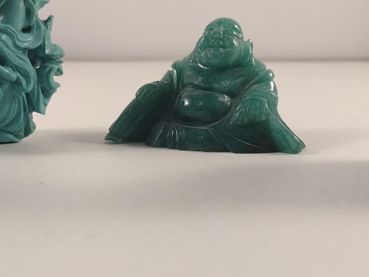 Collection of Asian Themed Items include Jade Buddha, Carved Netsuke, and Two Porcelain Snuff Bottles