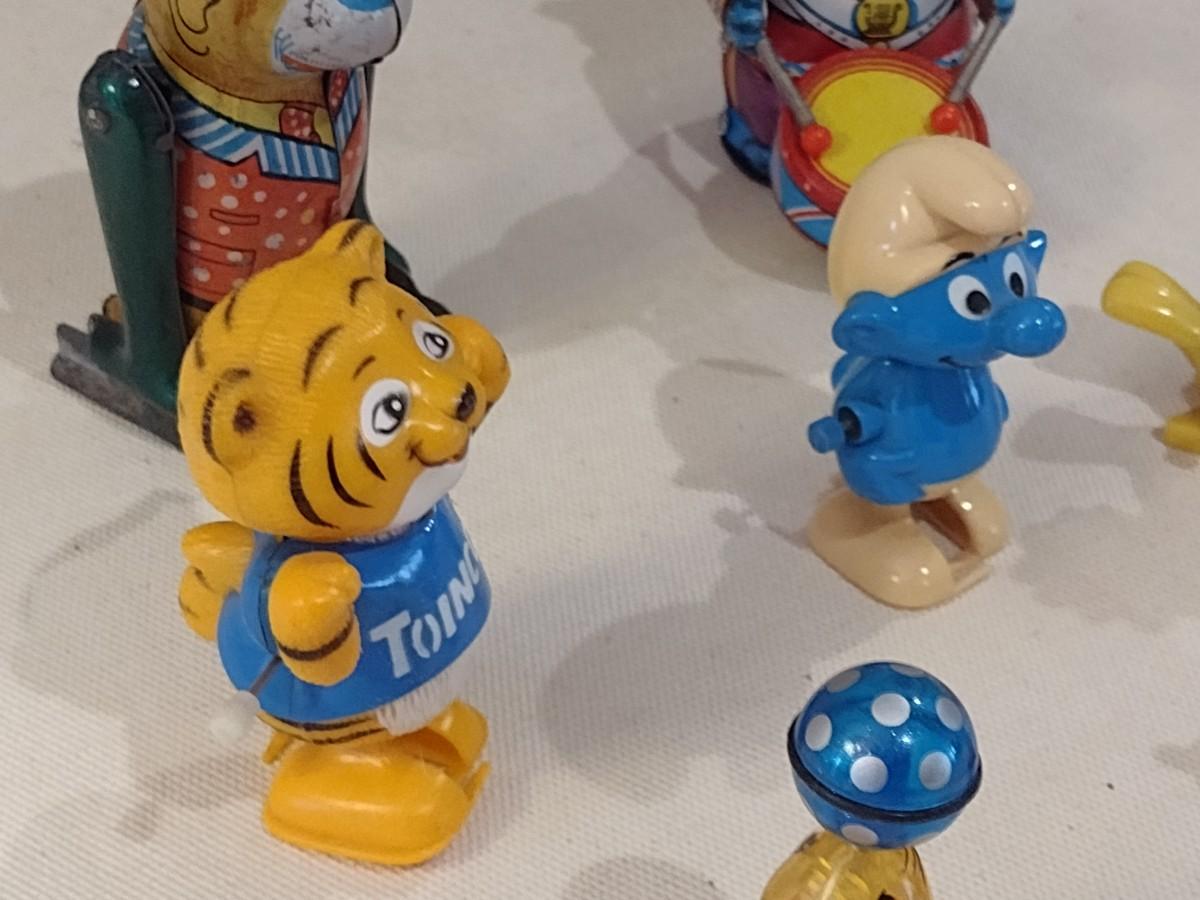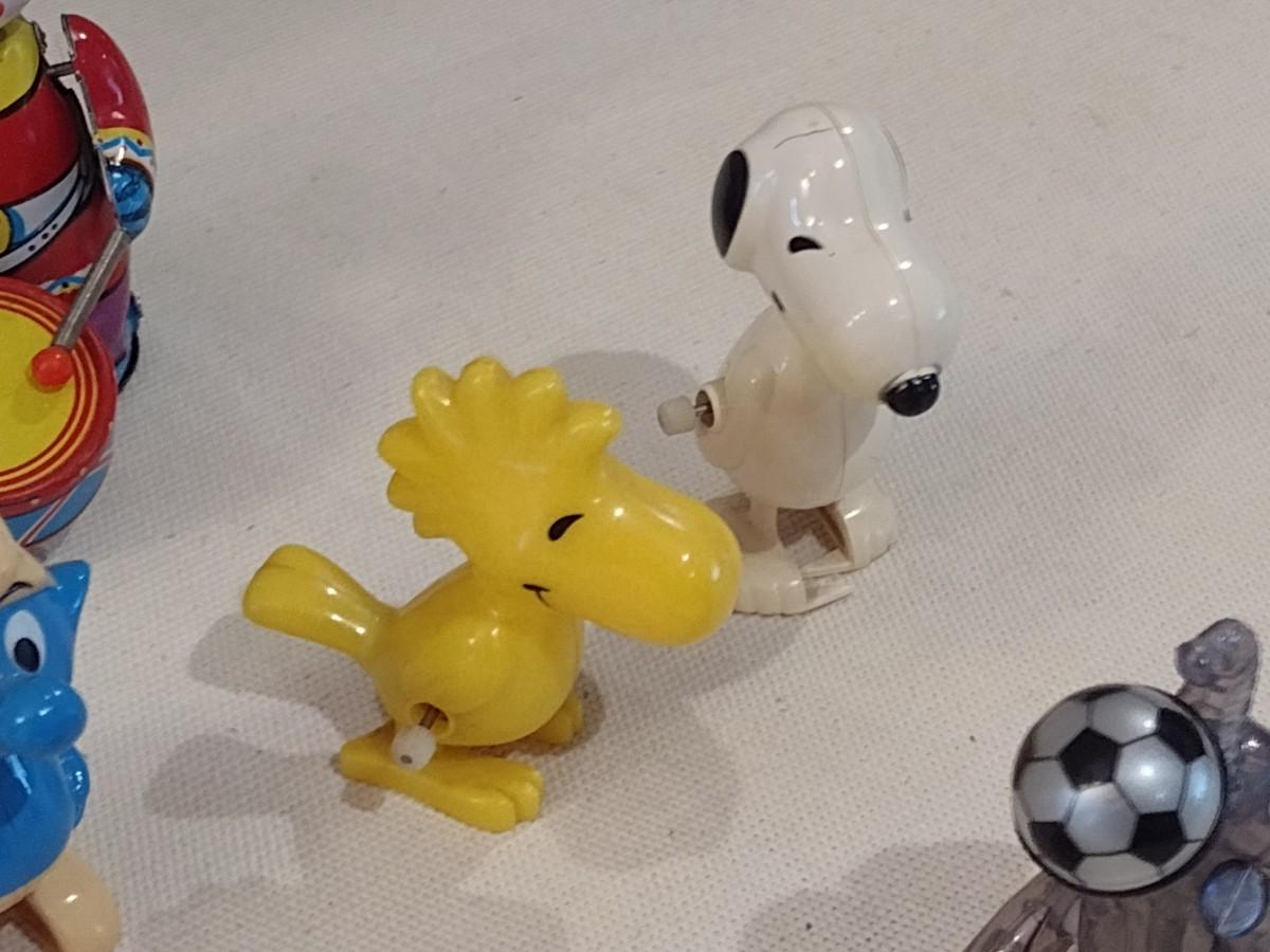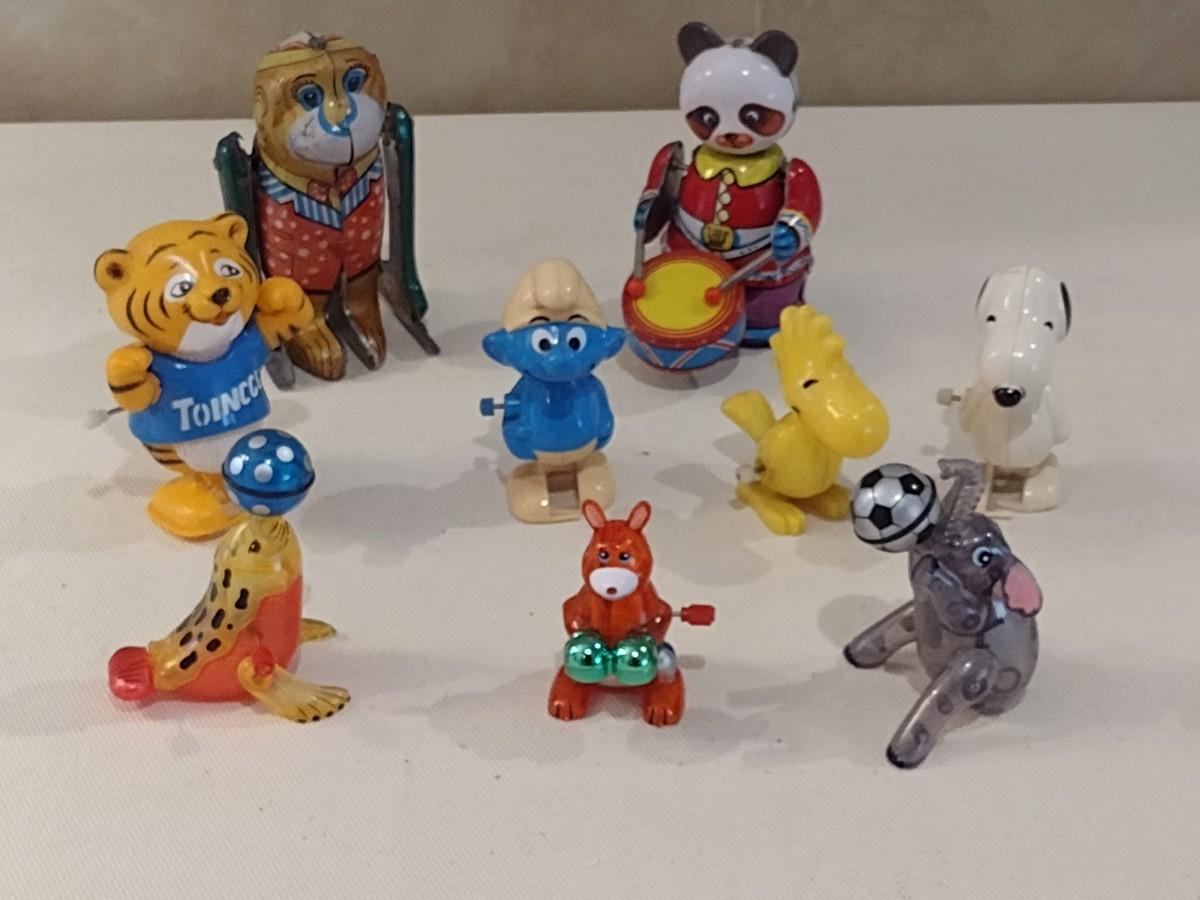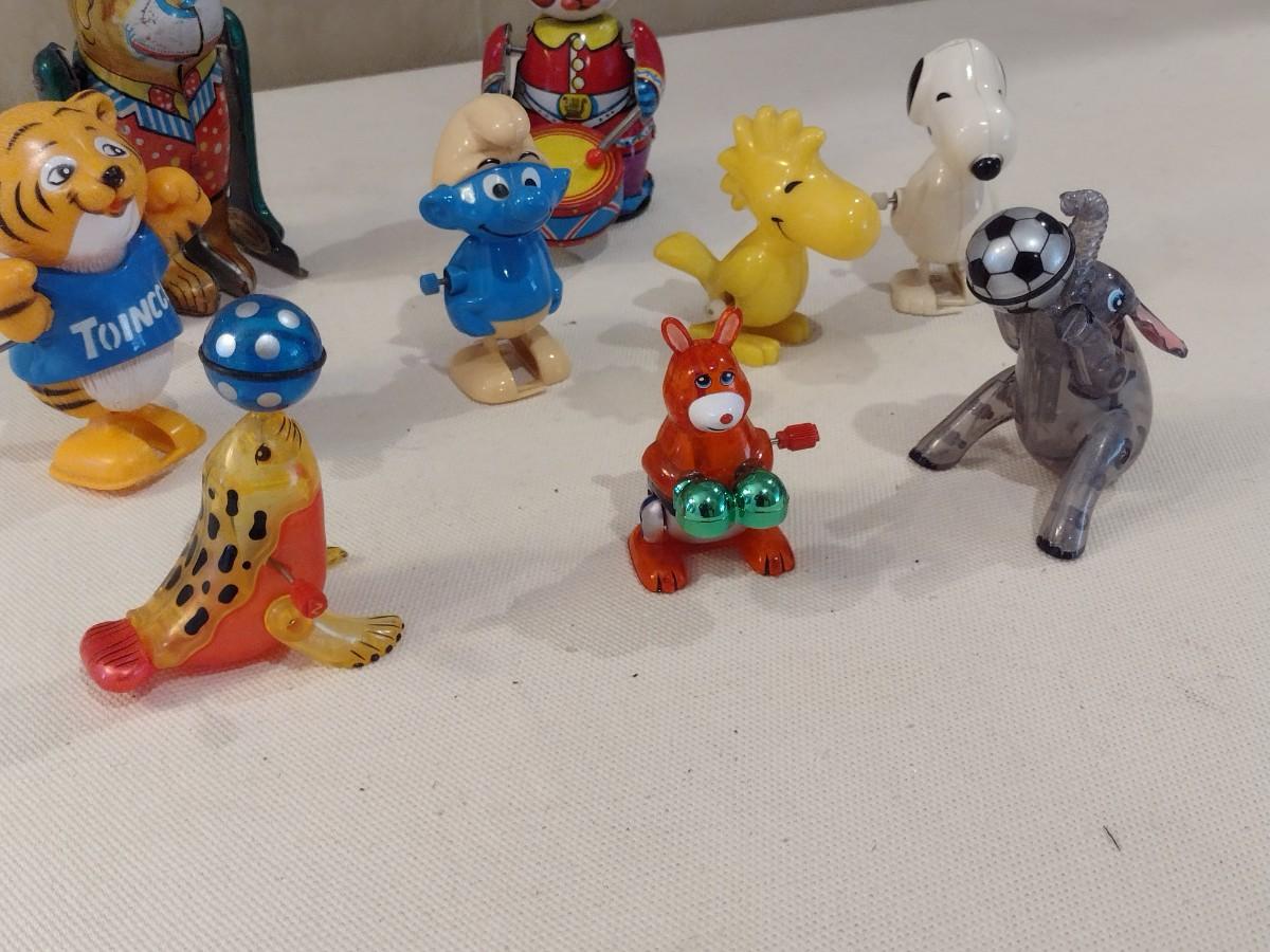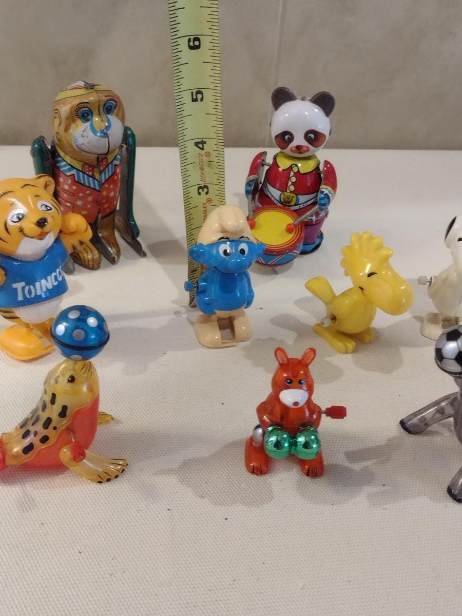 Collection of Vintage Windup Toys includes Snoopy, Woodstock, Smurf, and Others