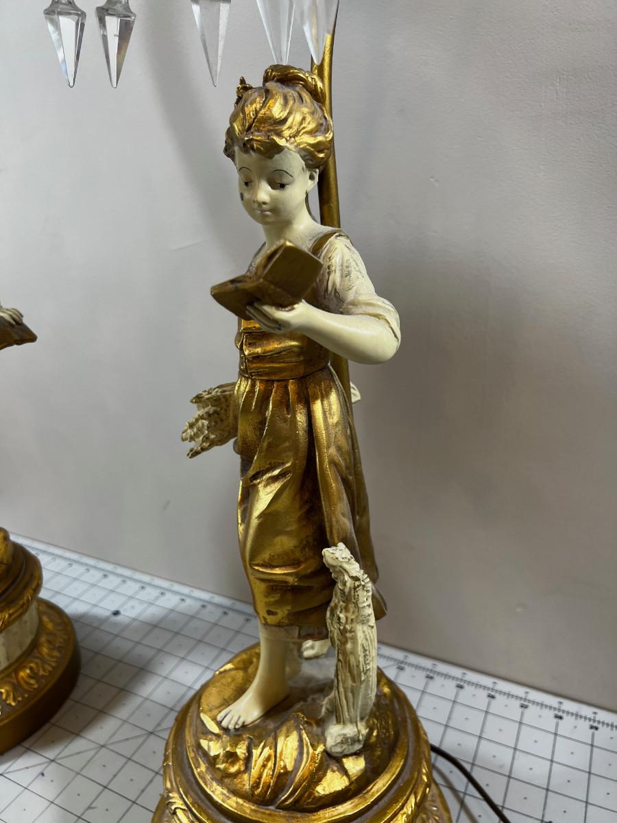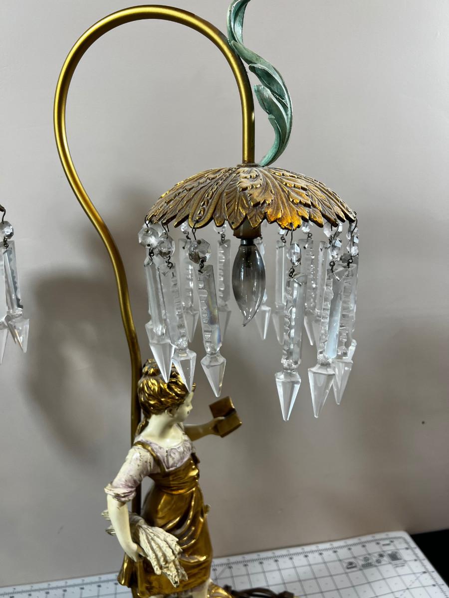 29" Tall in Excellent Working Condition! Missing 1 Crystal on the Girl Lamp. Felt Bottom. Sorry, No Shipping way to nice to crate!