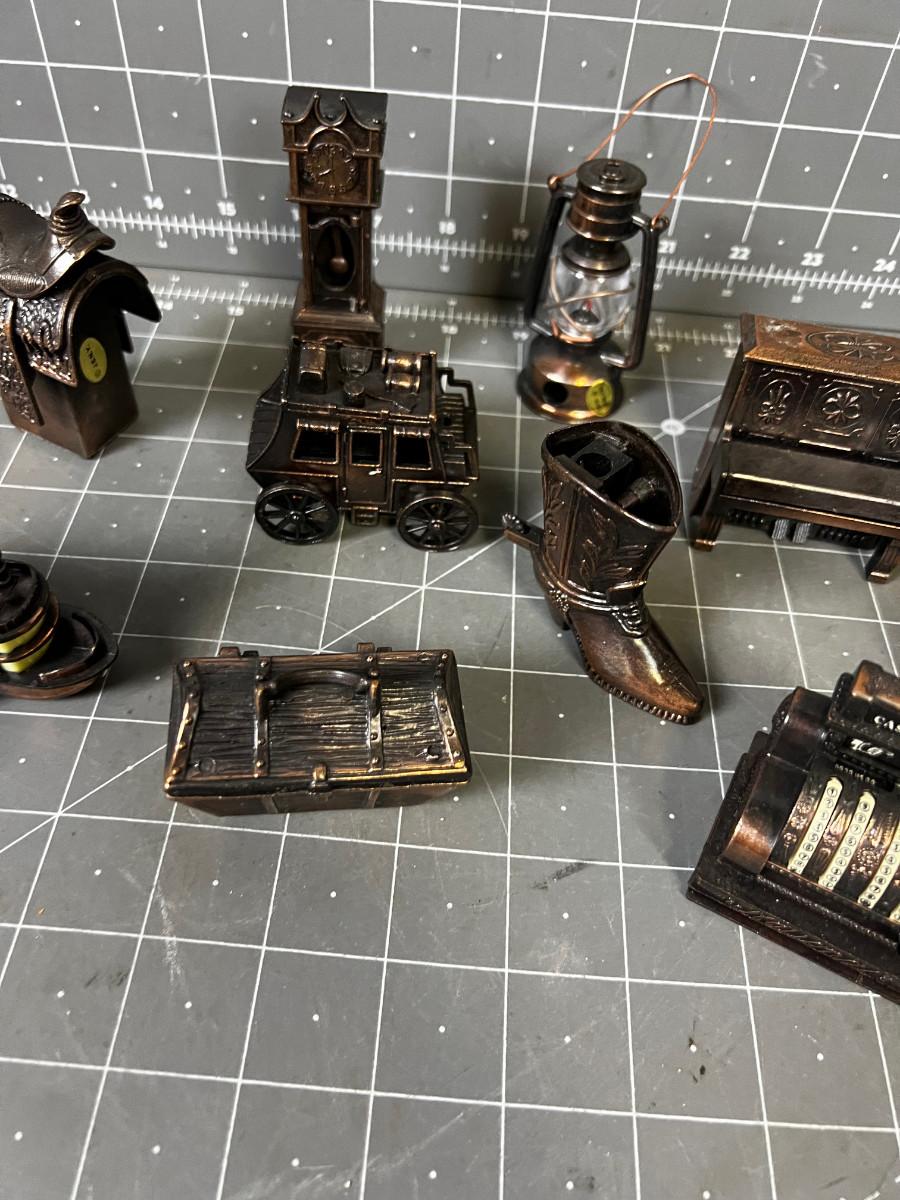 Collection of 10 Pencil Sharpeners: Saddle, Cash Register, Treasure Chest,