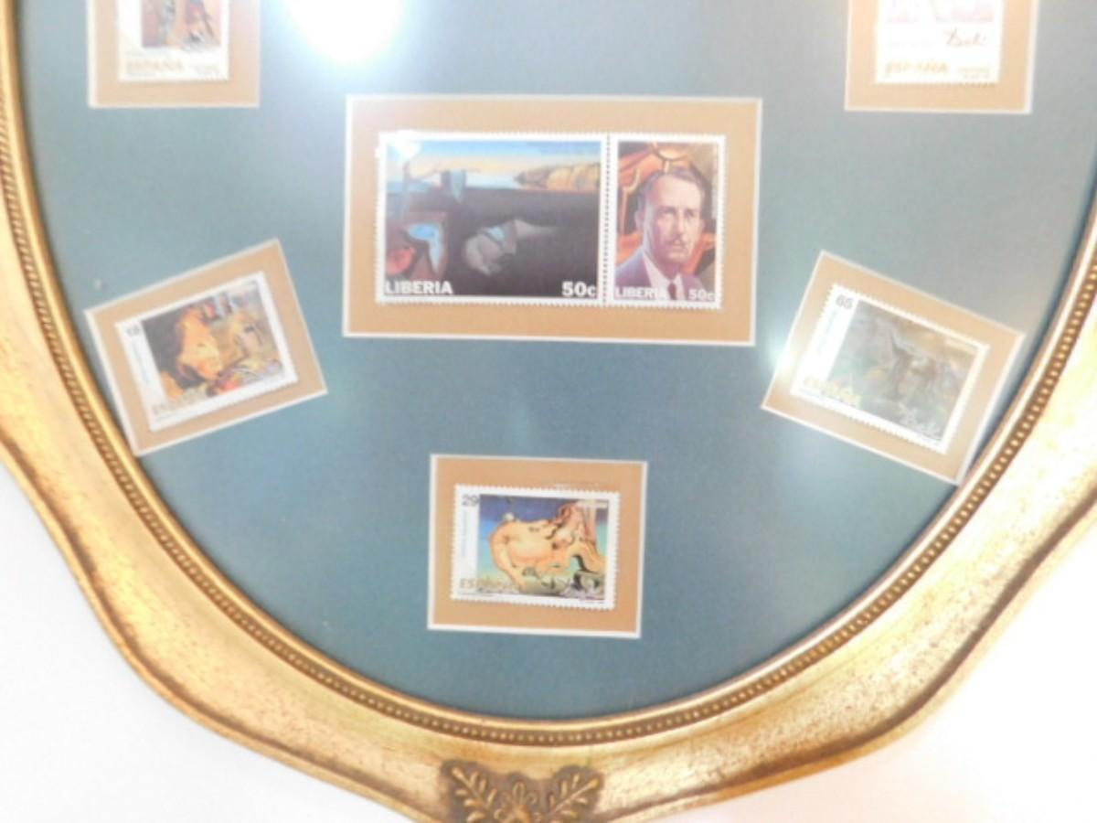 Collection of 10 Salvador Dali World Postage Stamps Encased in Bubble Glass Wall Display