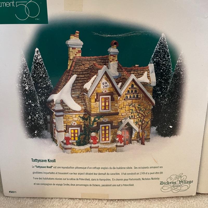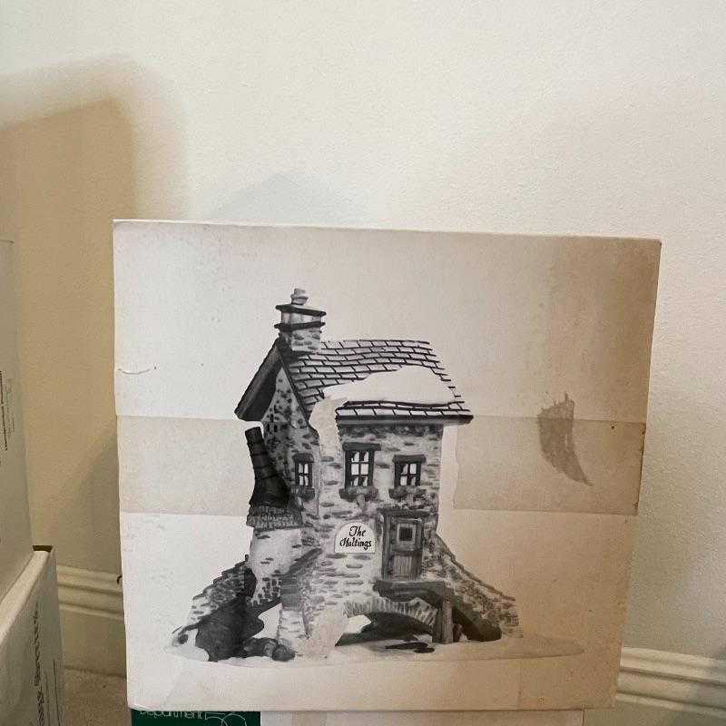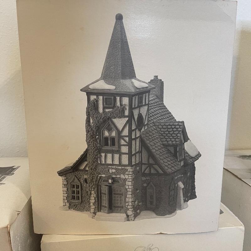 The Maltings, Theatre Royal, Crooked Fence Cottage, Tattyeave Knoll, C.H. Watt Physician, old Michael Church, Great Denton Mill, Merry Go Roundabout, The Old Curiosity Shop, Frosted Bare Branch Tree, Bringing Home the Yule Log, and Carolers On The Doorstep