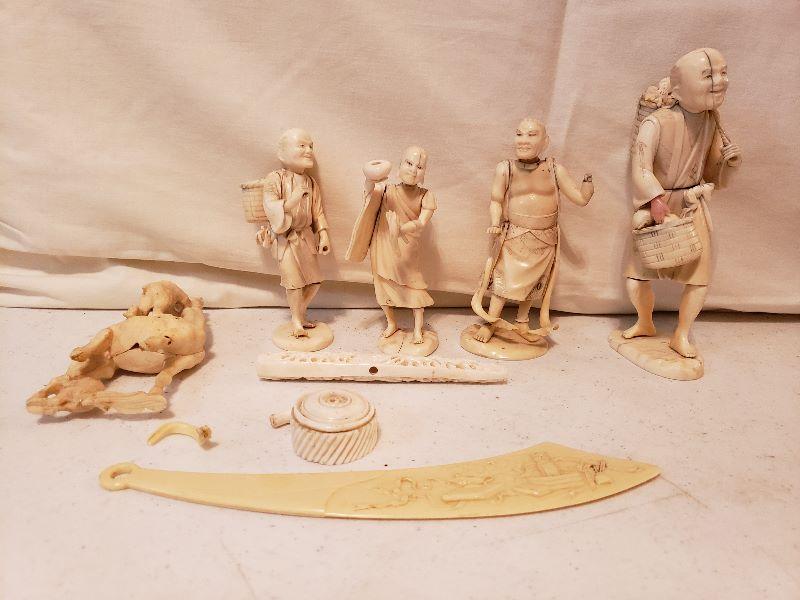 Collection of 19th Century Ivory Figures 4-6 1/2 "