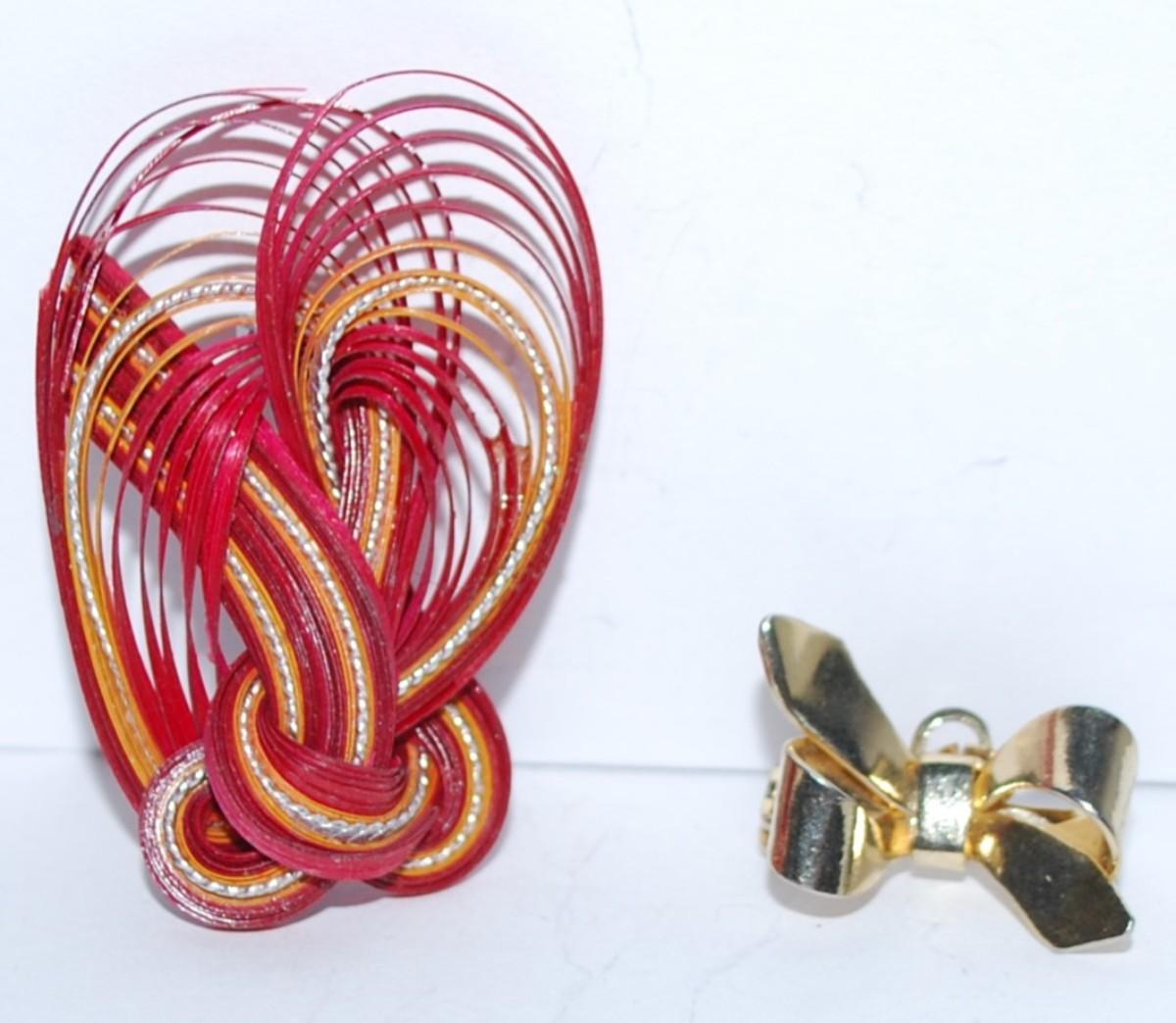 Collection of 2 Assorted BROOCHES - Red Knotted Ribbon and Gold Tone Bowtie