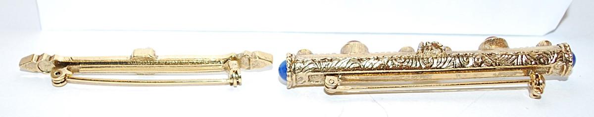 Collection of 2 BAR STYLE BROOCHES - 2ith 2 Blue Stones and 2 Red Stones (2¼" x ¼") & 4 Faux Pearls with Pointed Ends (2" x ¼")