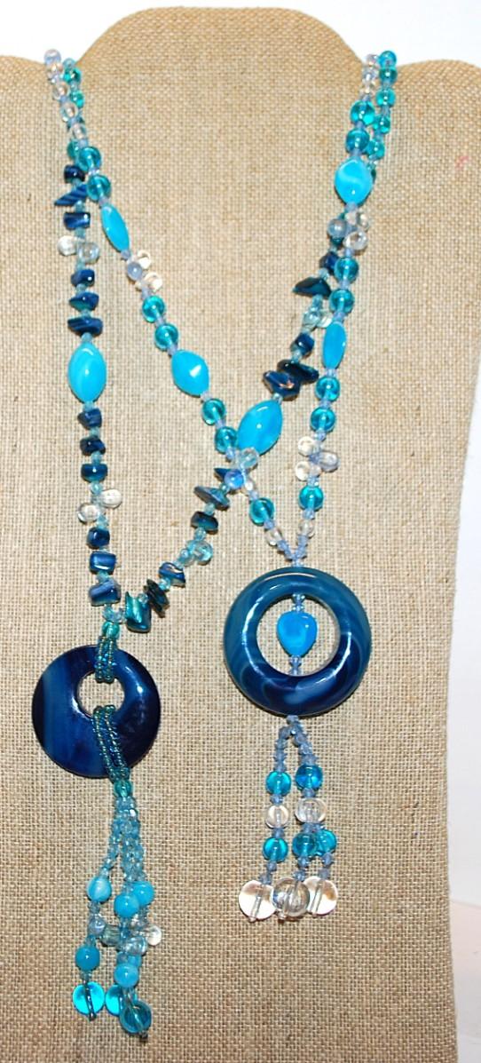 Collection of 2 BLUE RING Slip-Over NECKLACES with Blue and Green Accents 36" L