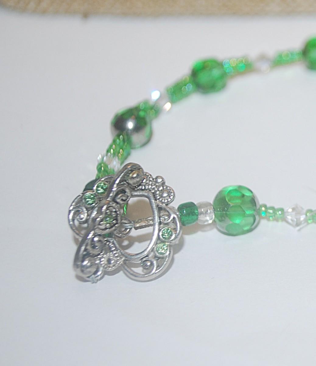 Collection of 2 BRACELETS (2¾"+ Opening) - Green Has HEART Style Decorative Toggle Clasp; Elastic Brown and Faux Pearl Globes