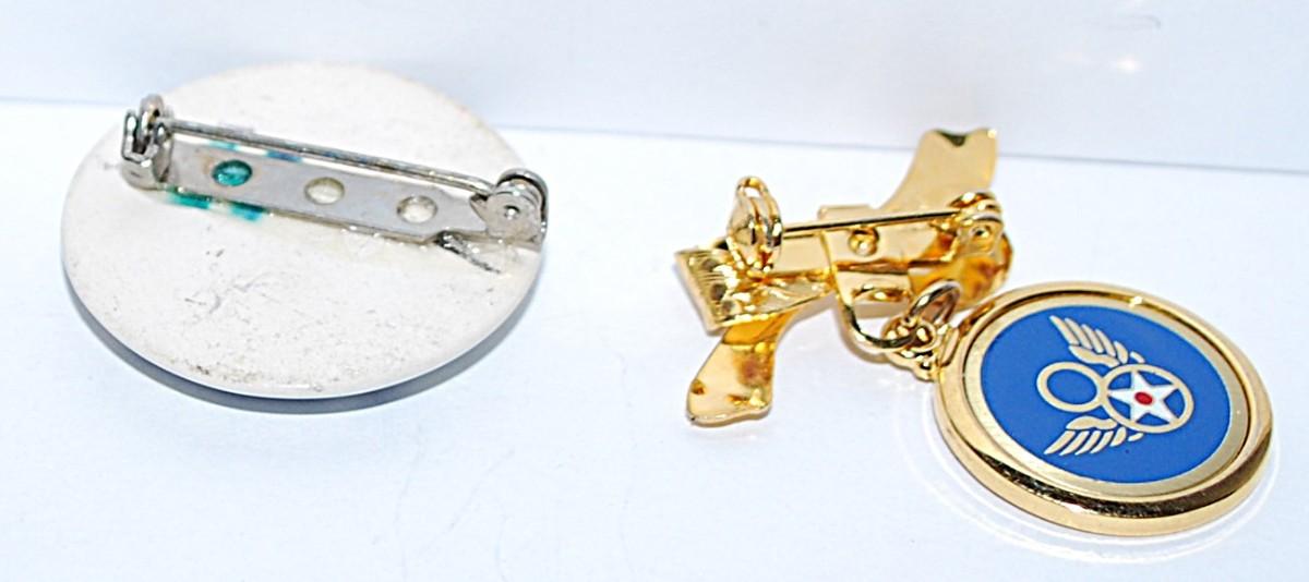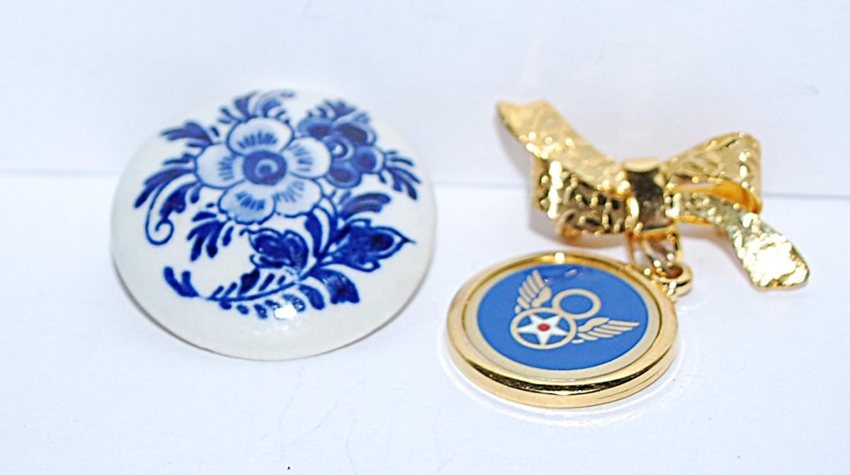 Collection of 2 BROOCHES - "WWII Hap Arnold Ribbon Pin" & Blue "Delft" Style Circle