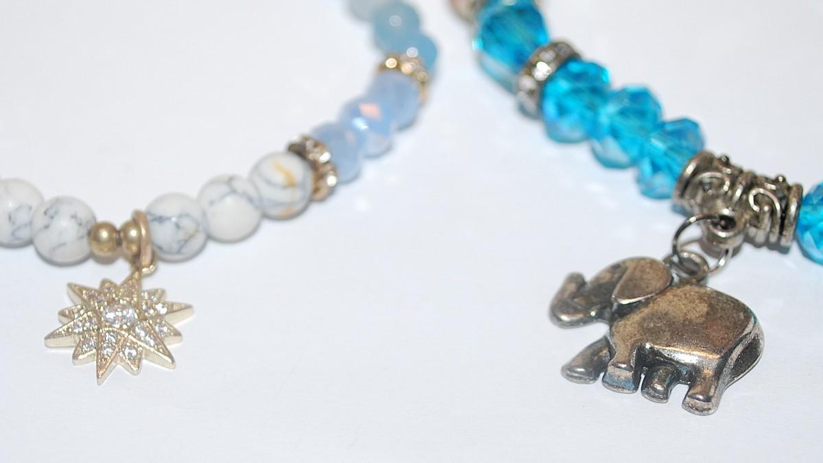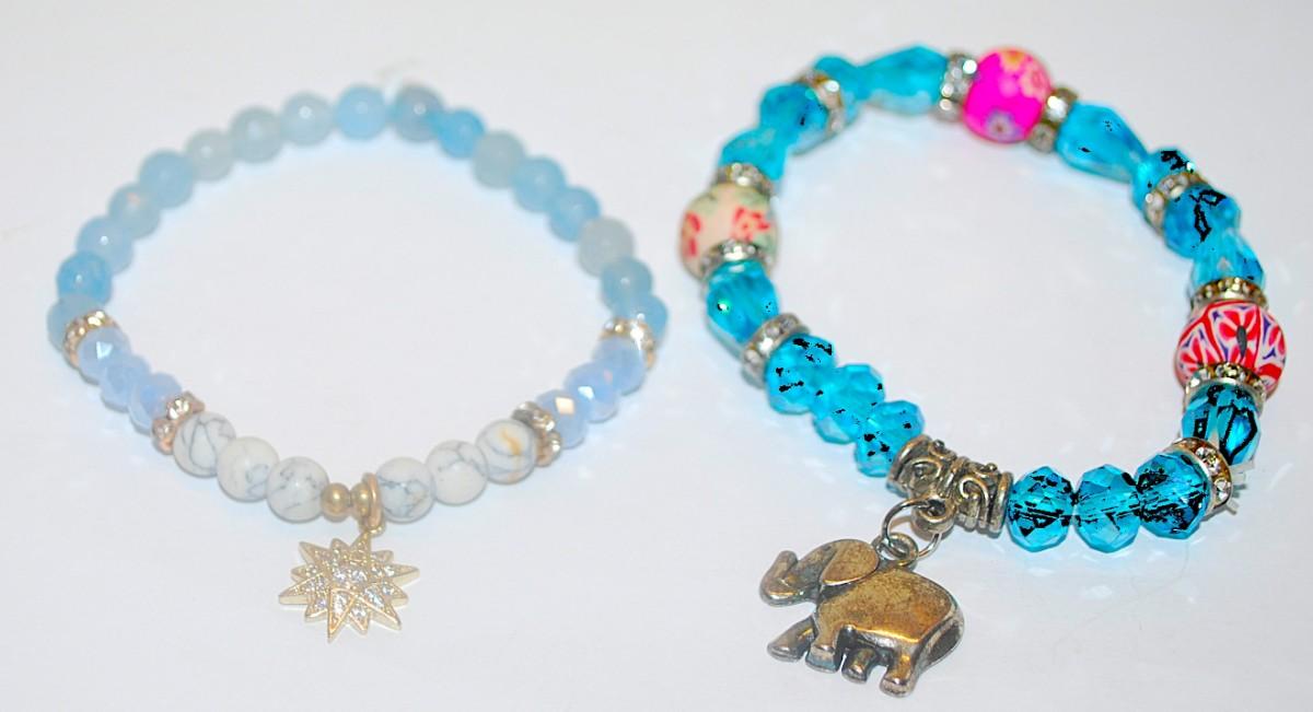 Collection of 2 Elastic BRACELETS (2"+ Opening) with ELEPHANT and STAR Dangle Charms