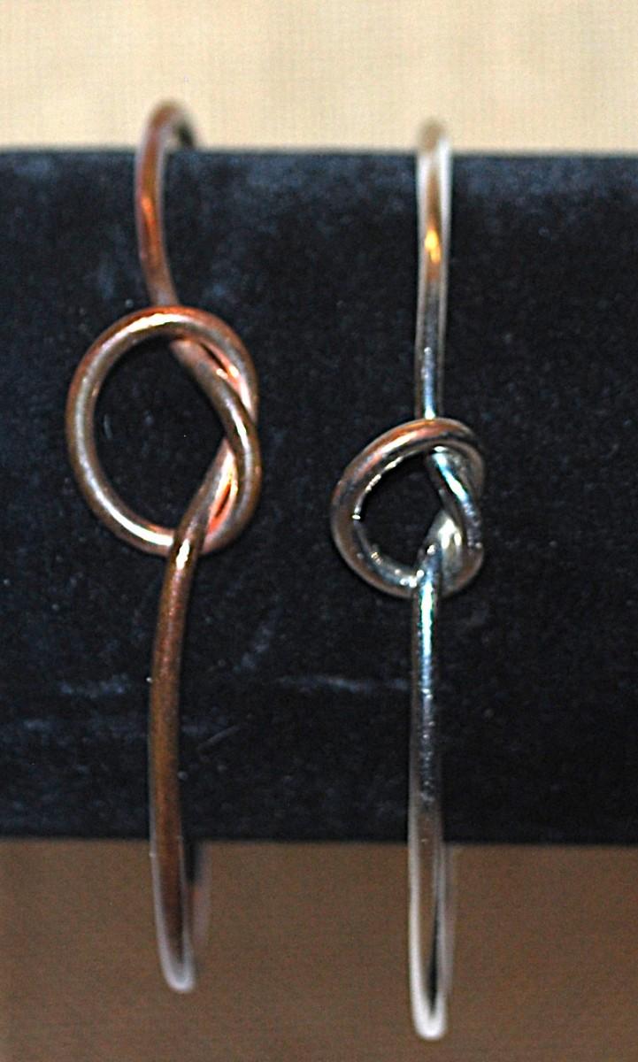 Collection of 2 Open-Ended KNOTTED BRACELETS (2½" Opening) in Both Silver/Brass Tone Metal