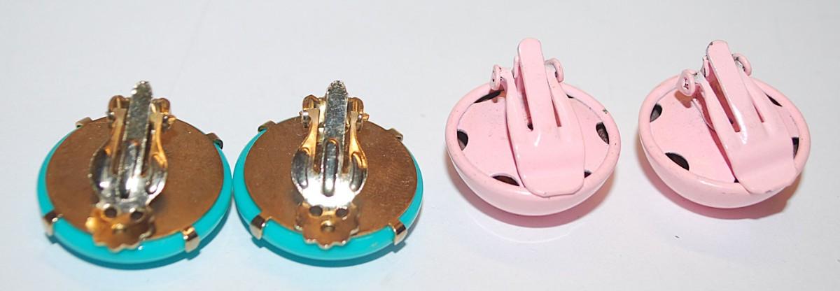 Collection of 2 Pairs EARRINGS - PINK & BLUE Circles with Snap-On Clasps