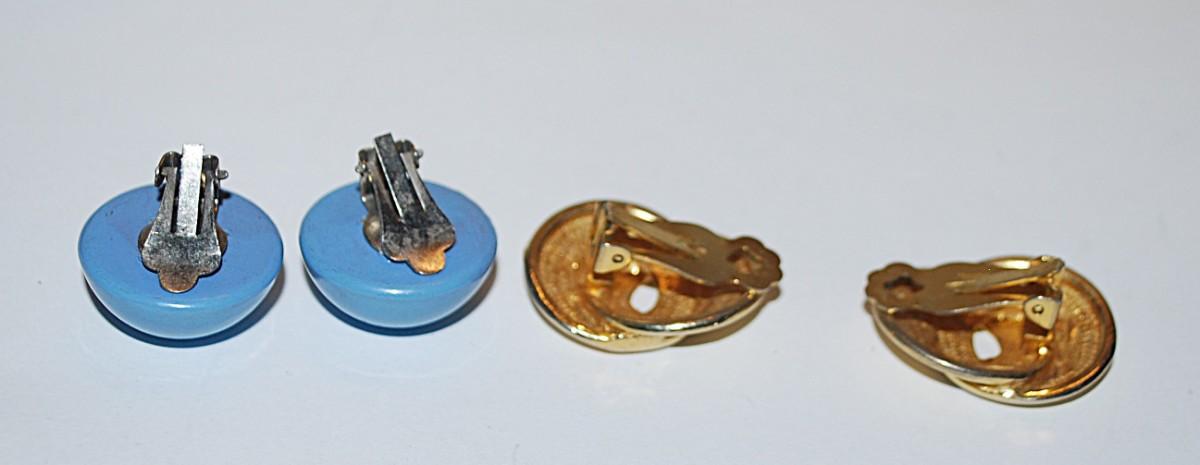 Collection of 2 Pairs EARRINGS - Blue Half Globe & Gold Tone Swirl with Snap-On Clasps