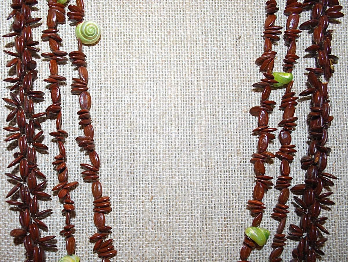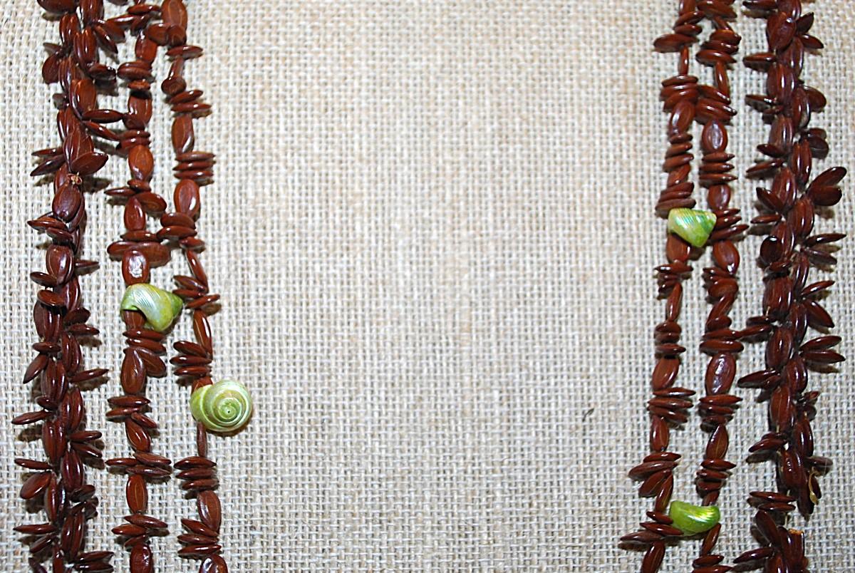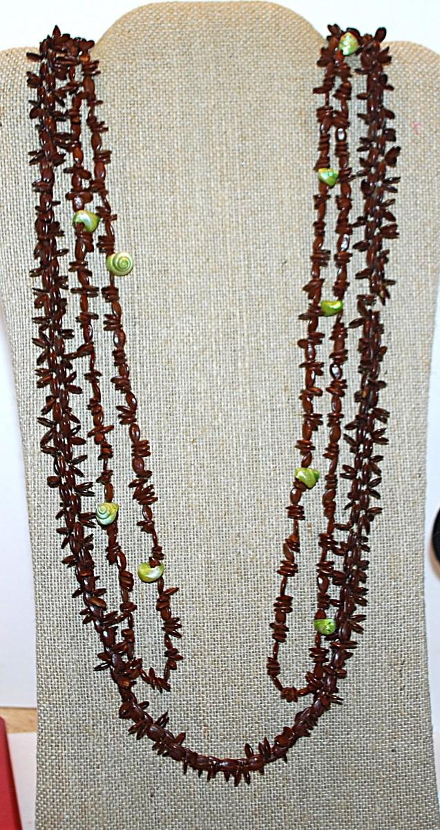 Collection of 2 Similar WRAP-AROUND NECKLACES with Acrylic Brown "Beads" and Shell Accents - 64" and 42" Long