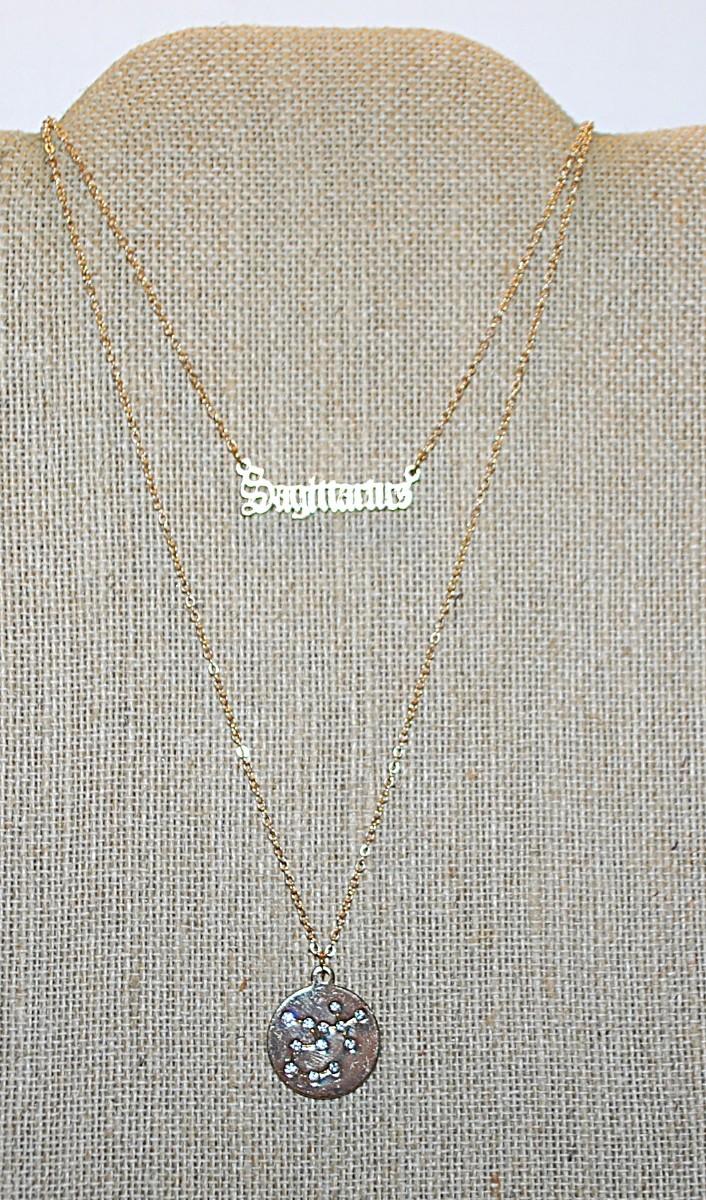 Collection of 2 ZODIAC SIGN "SAGITTARIUS" NECKLACES -1 with the Word and the other the Constellation-both in Gold Tone and Lobster Clasps 16" L