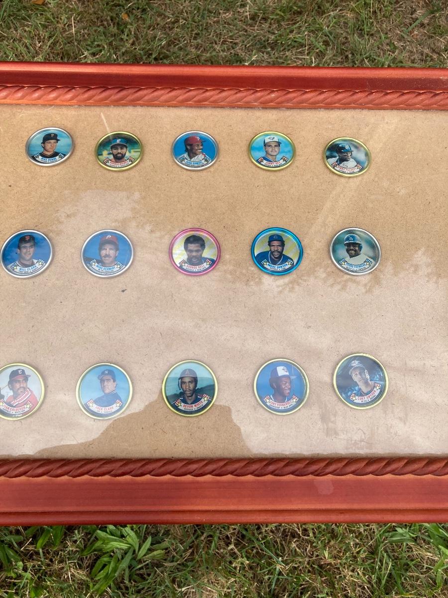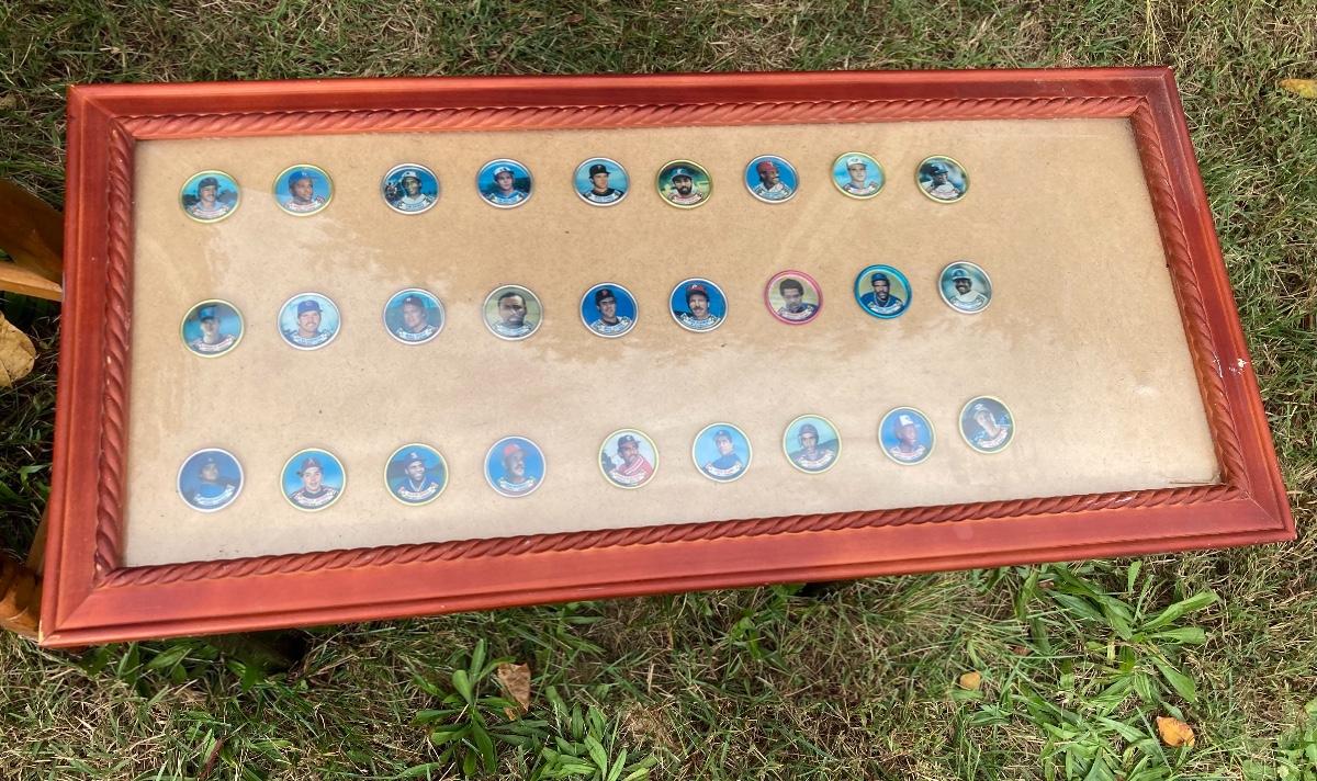 Collection of 27 Baseball Caps in Frame 30” x 14”