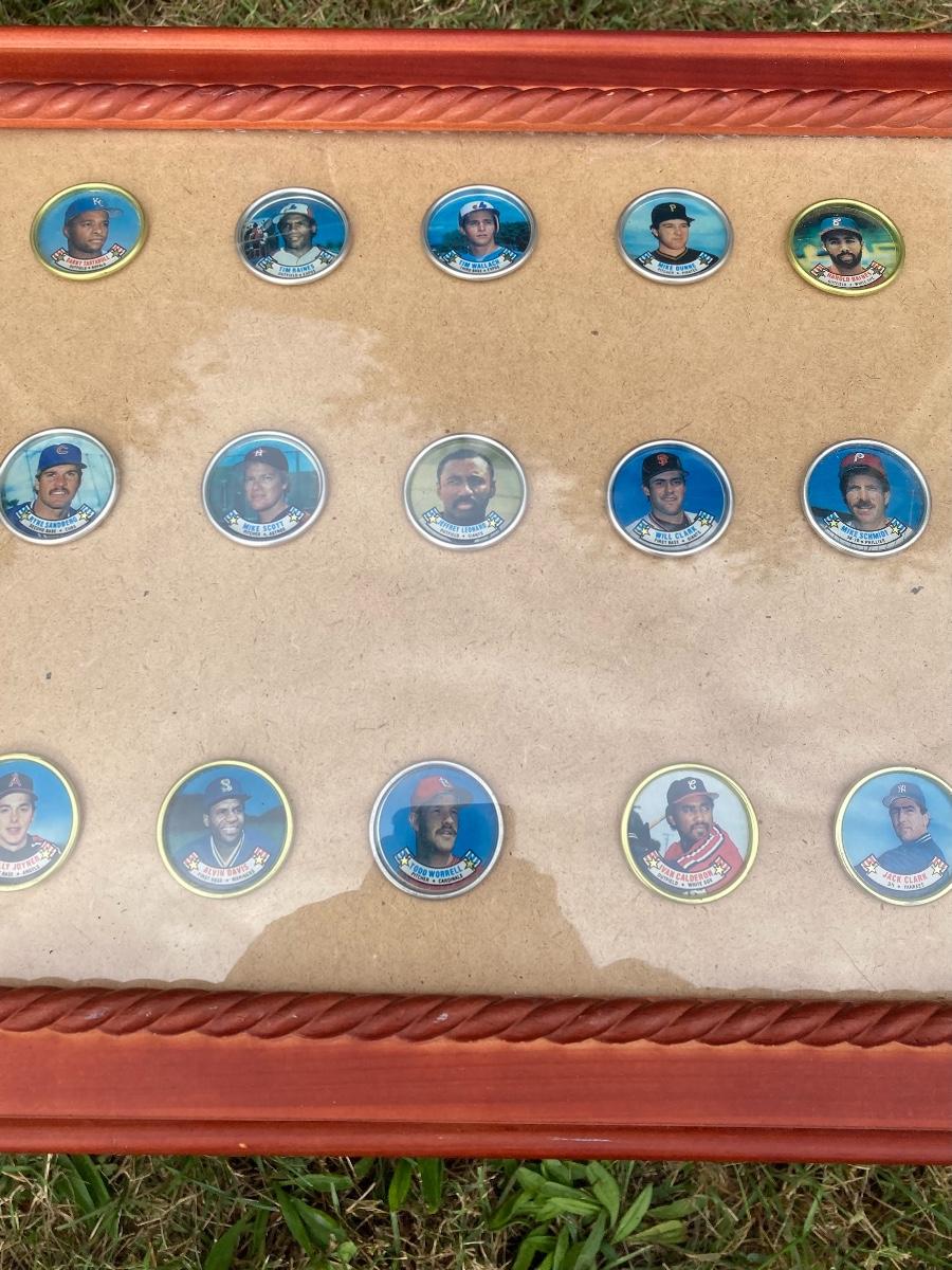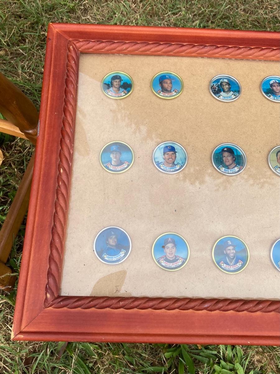 Collection of 27 Baseball Caps in Frame 30” x 14”