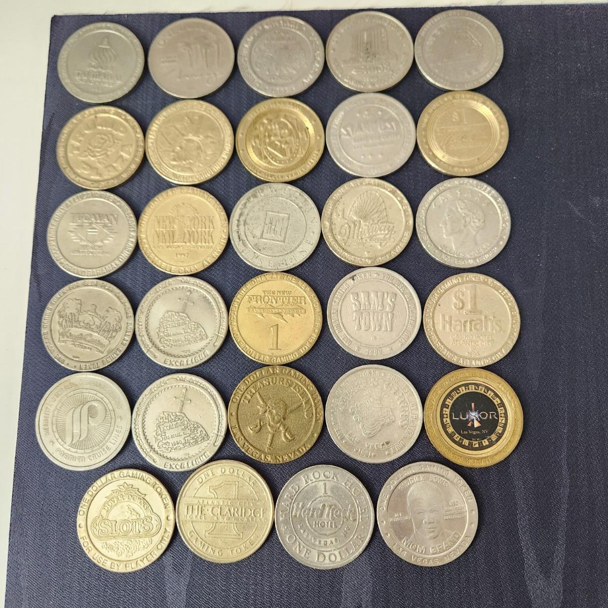 Collection of 29 Vintage Las Vegas & Other Casino Slot Machine $1 Coin Tokens