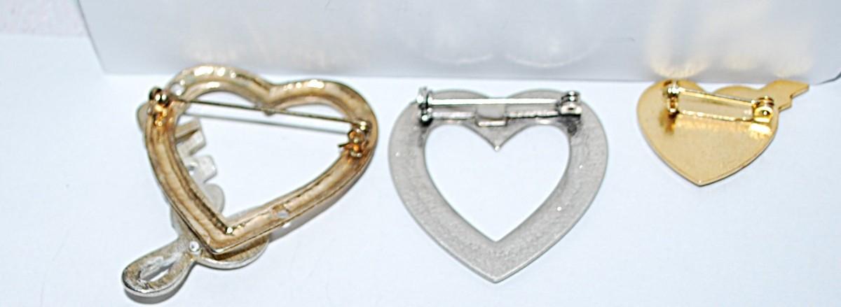 Collection of 3 BROOCHES - "Jesus" Heart, Red Heart & Silver Colored Heart