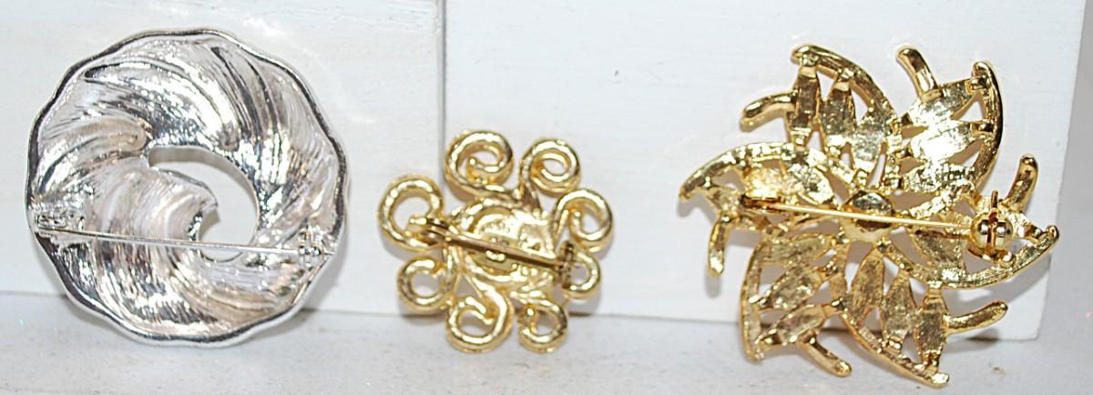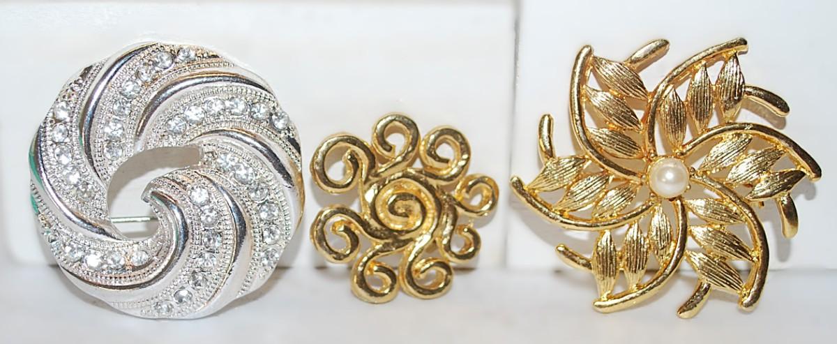 Collection of 3 "Gold & Silver Colored" Round Style BROOCHES (1½" to 1") with a Pearl on the "Starburst"