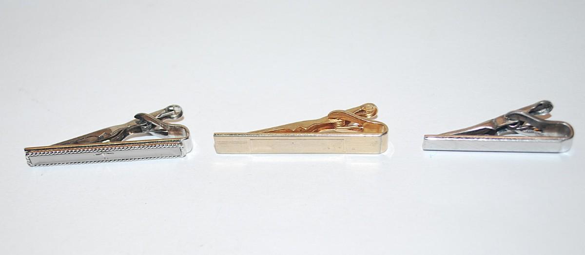 Collection of 3 Marked "SWANK" Brand TIE CLASPS (1¼" - 1½") in Both Gold & Silver Tone