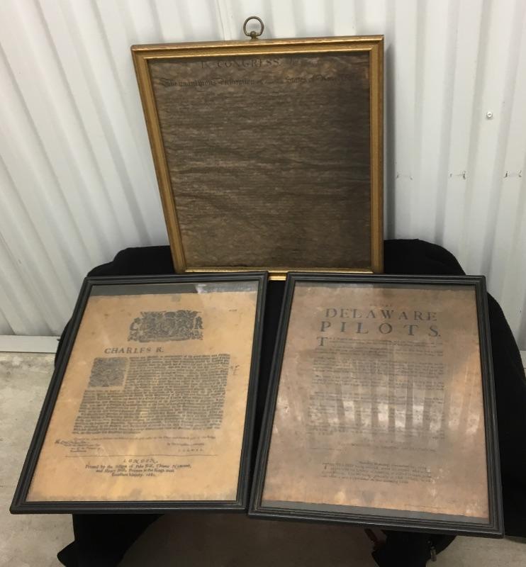 Collection of 3 Vintage Documents including DECLARATION of INDEPENDENCE 12.5 x 15.5