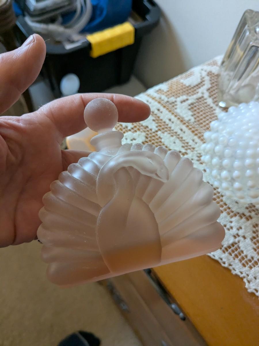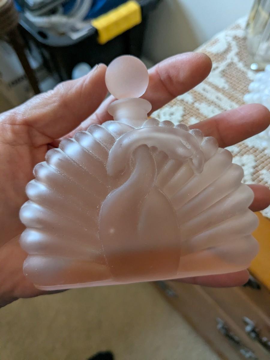 Silvestri Frosted Pink Glass Relief Swan Perfume Bottle & Stopper Dauber
