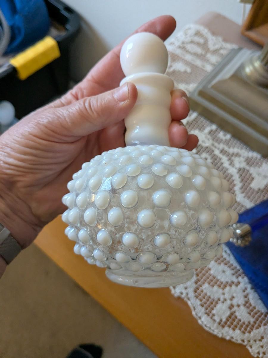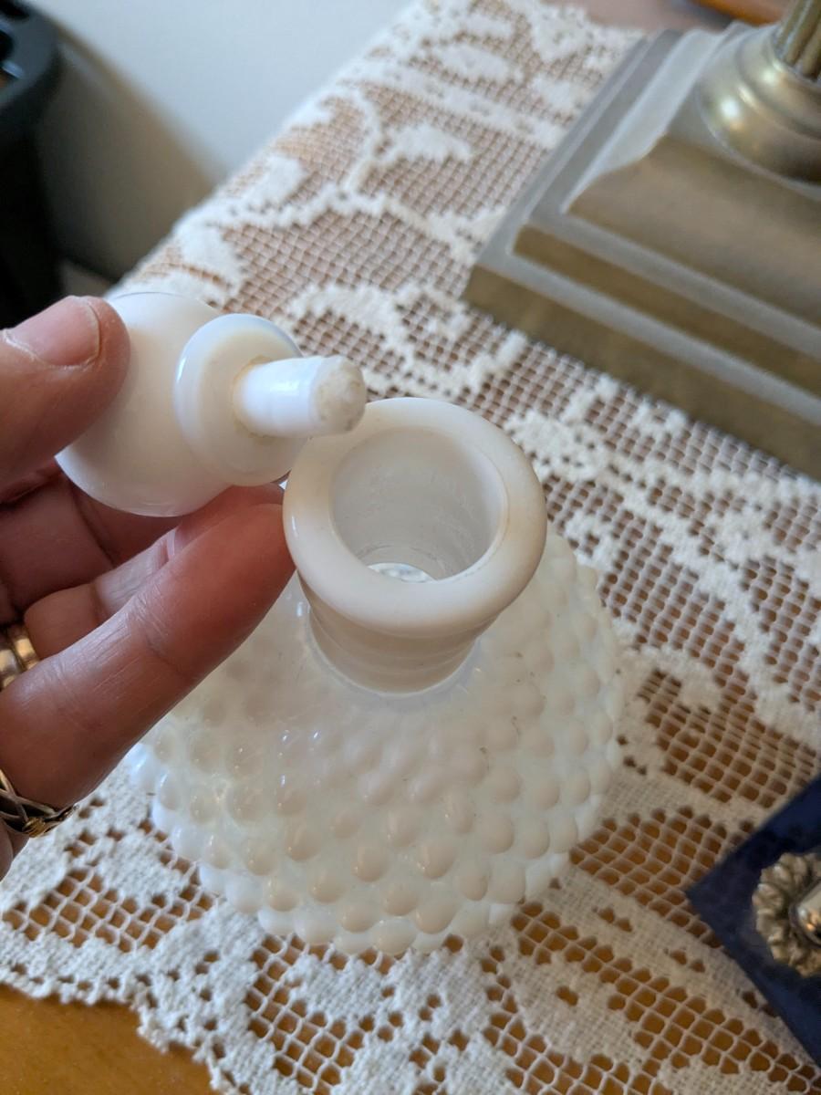 Vintage Fenton Hobnail White Milk Glass Perfume Bottle w/Stopper
