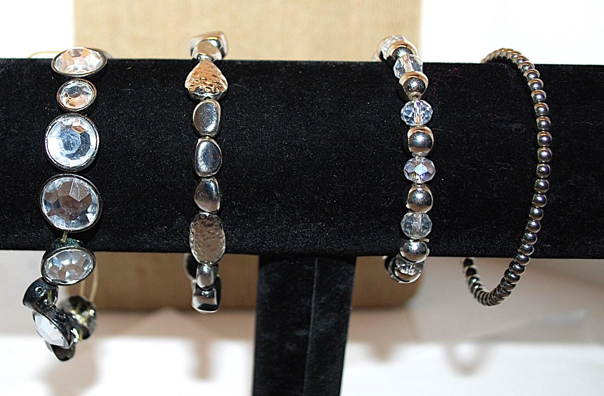 Collection of 4 Elastic "Silver Themed" BRACELETS (2½"+ Opening) with Beveled Round Glass Stones & Pods + Globes