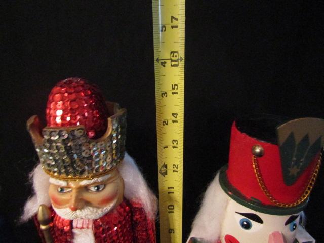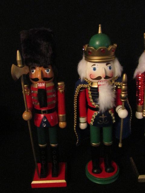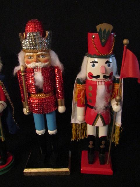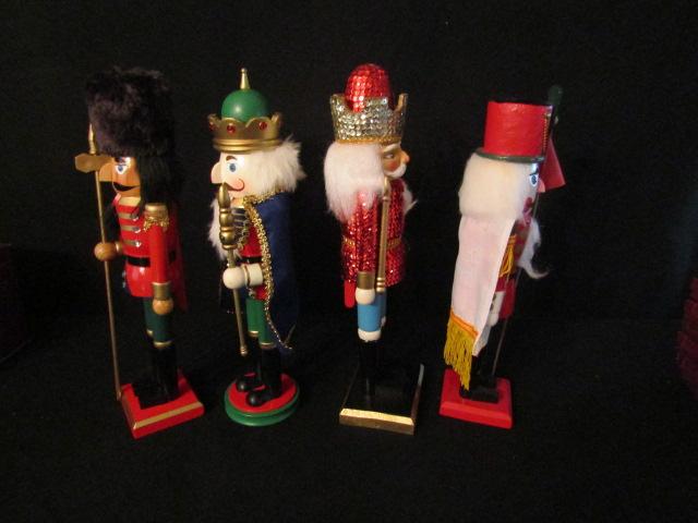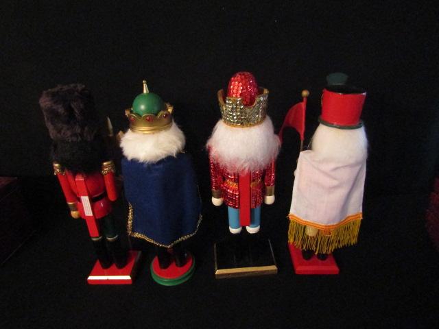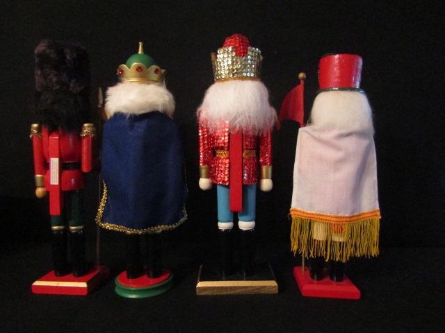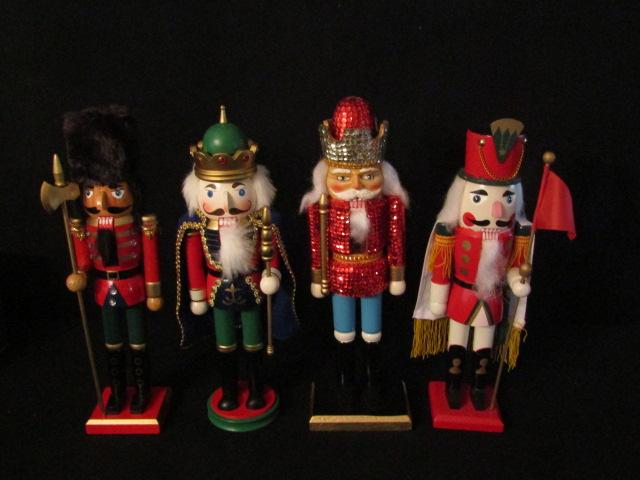 Collection of 4 Nutcrackers. Figure with red hat is missing a few sequins. Please see pictures.