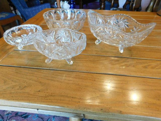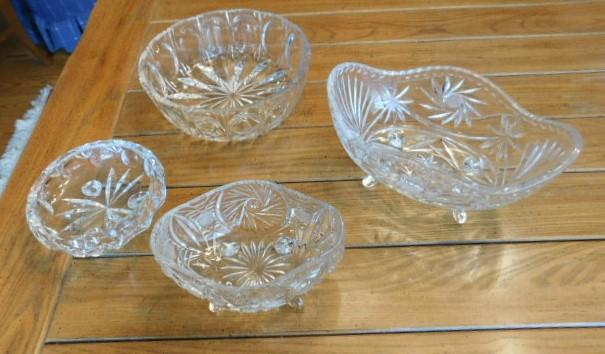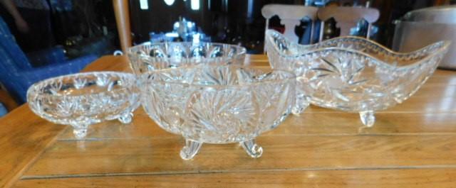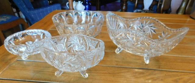Collection of 4 Pieces Cut Glass Crystal Bowls