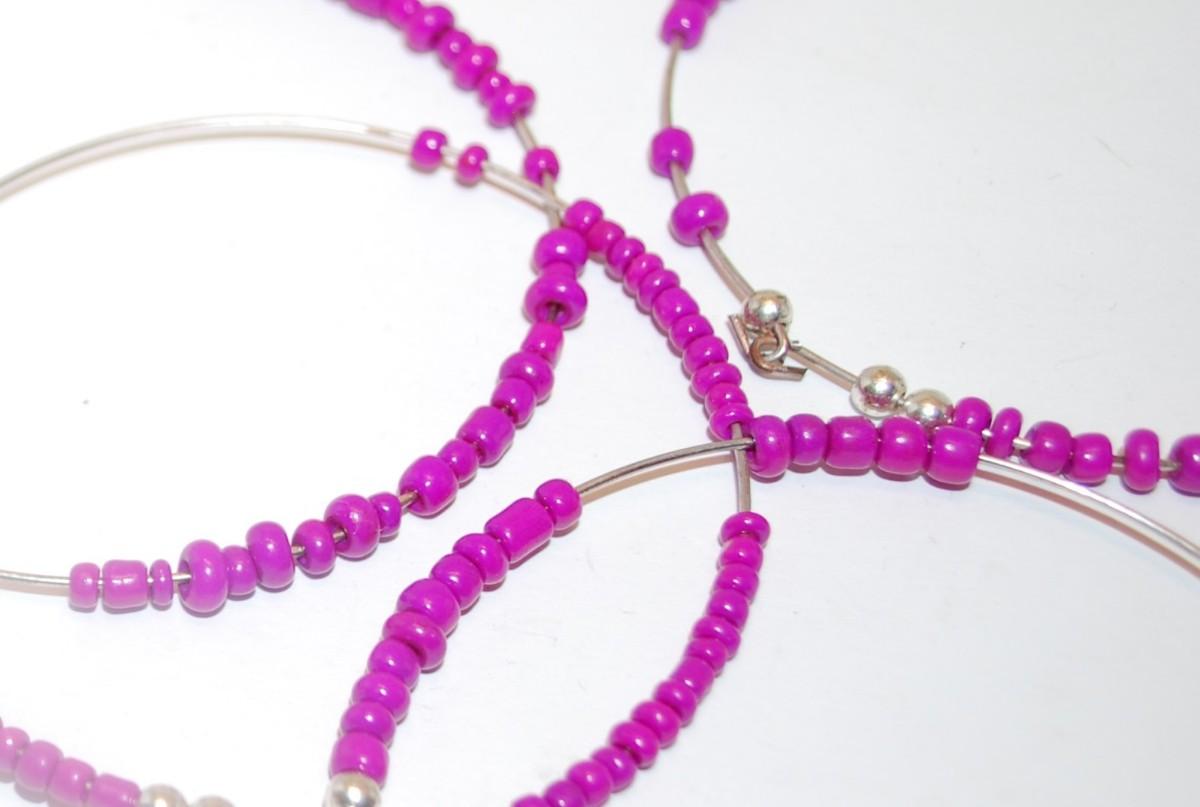 Collection of 4 PINK BANGLE BRACELETS (2¾" Opening) - with MOVEABLE Beads and 1 with LEAF Accent