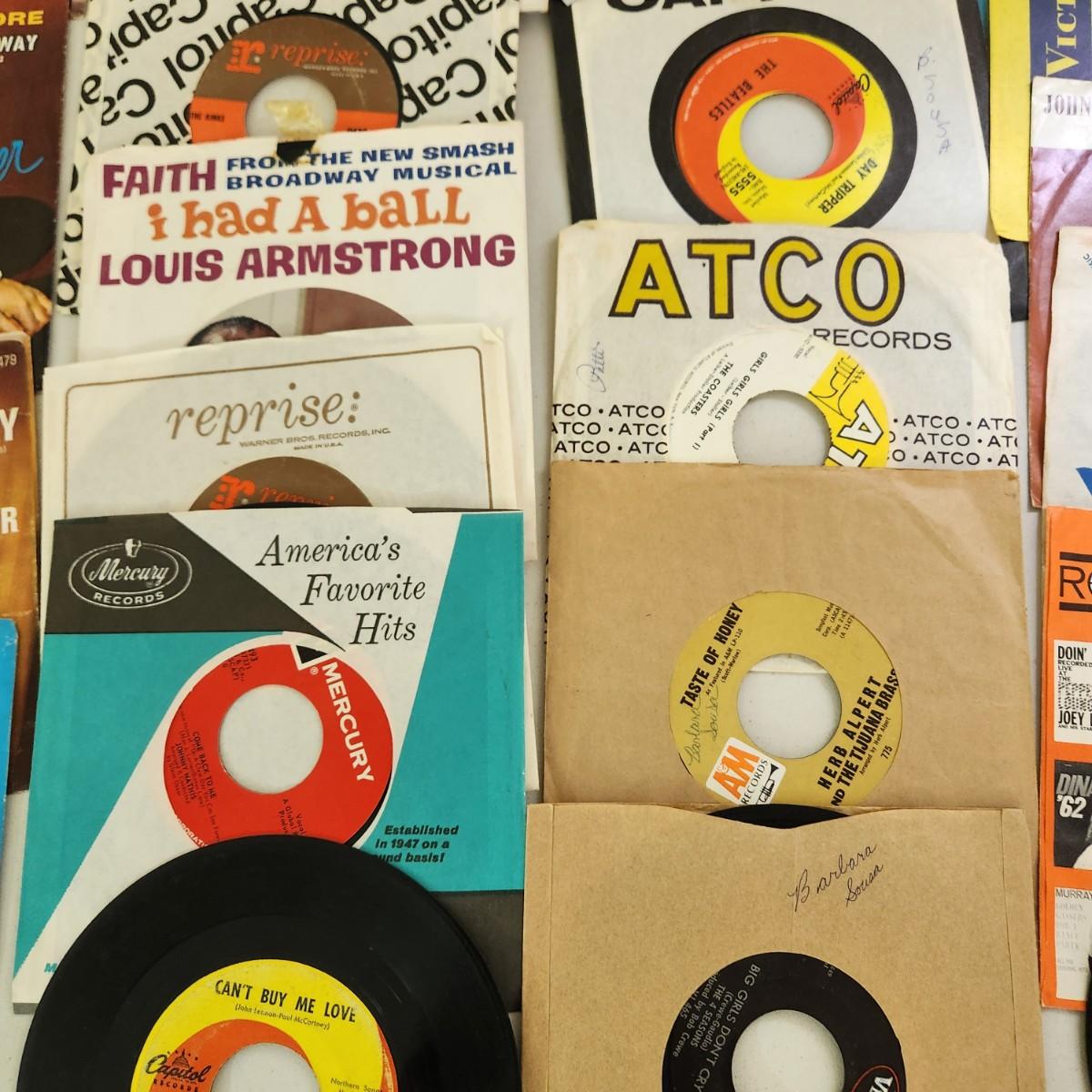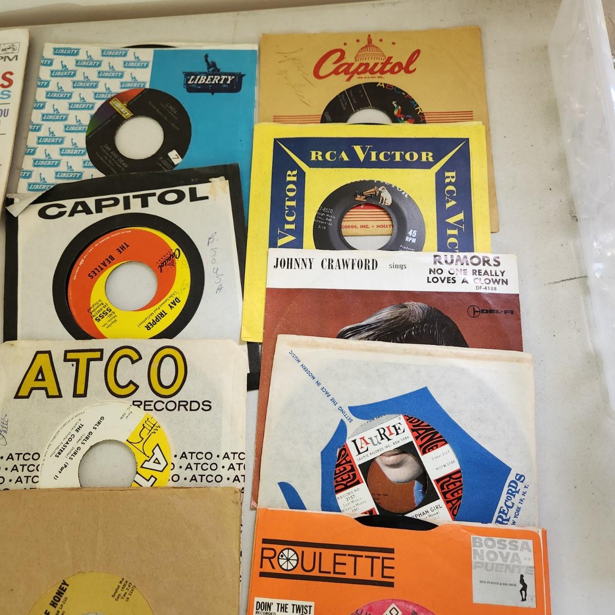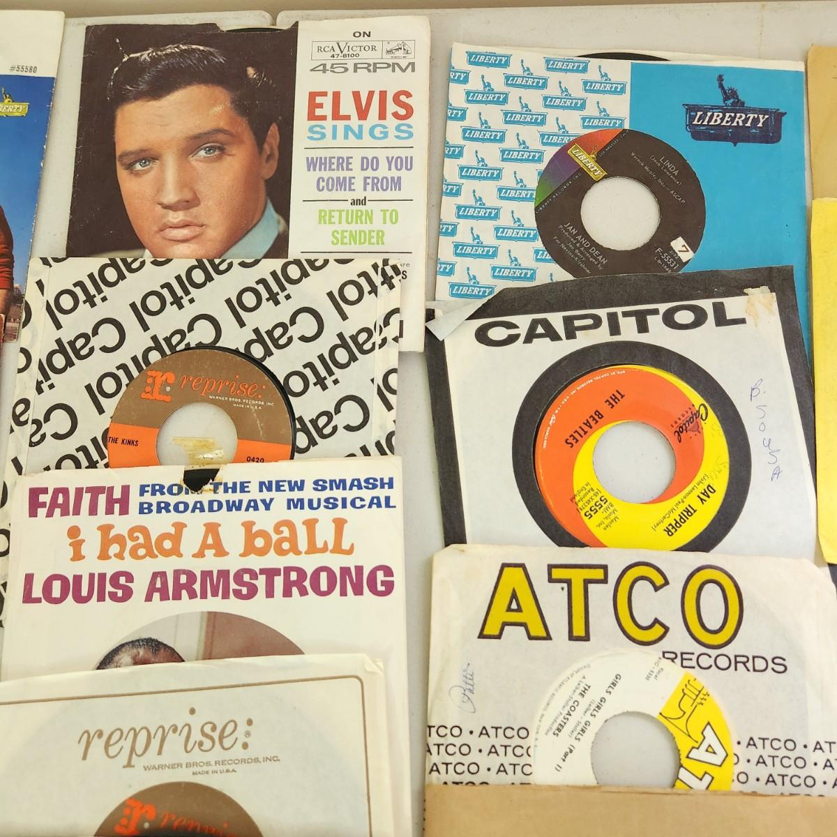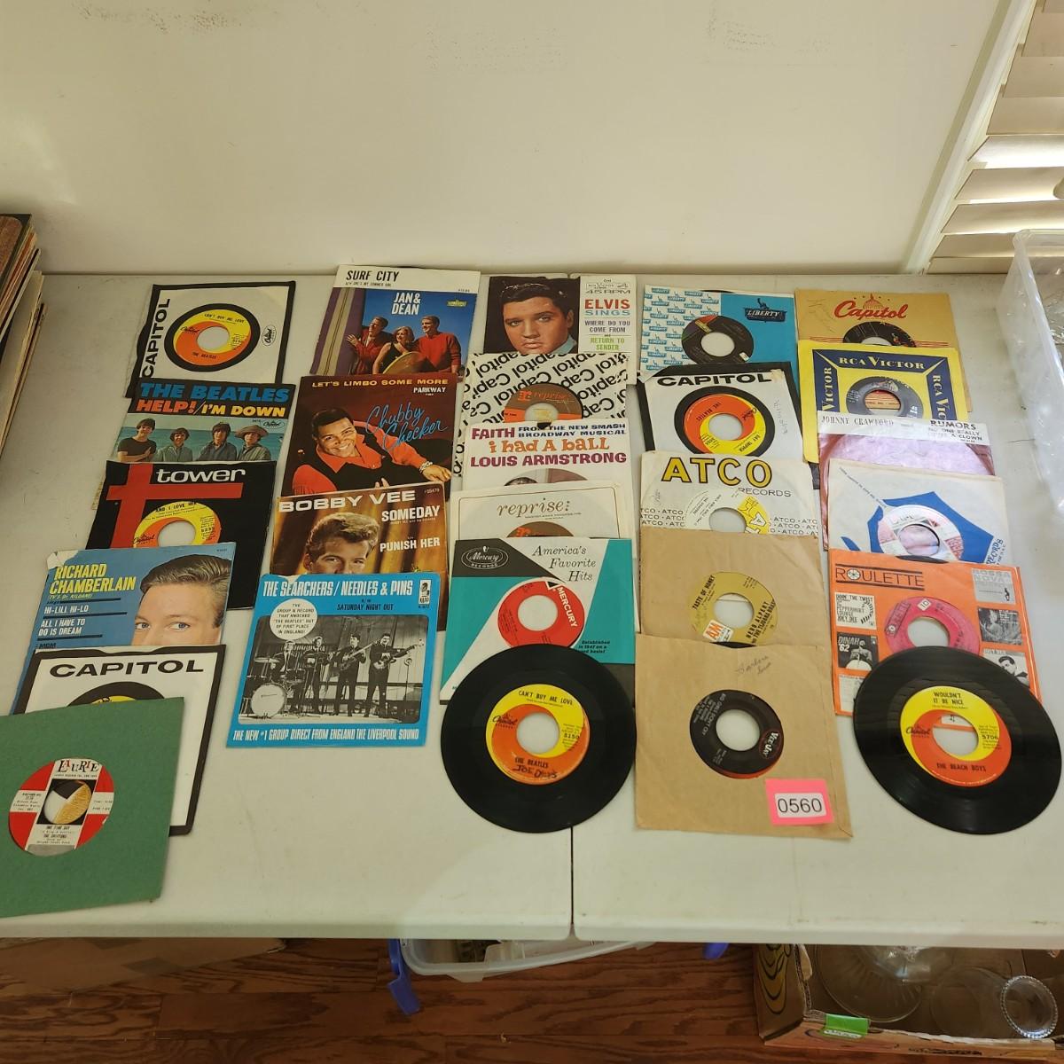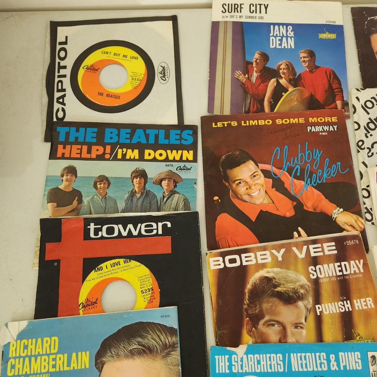 Collection of 45 RPM Records Beatles, Elvis Bobby Vee, Jan & Dean, Jukebox