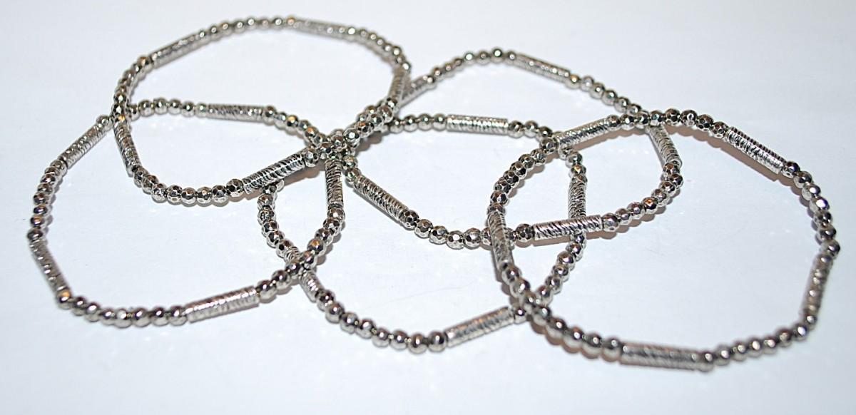 Collection of 5 Elastic IDENTICAL Chain-Style BRACELETS (2" Opening) with Silver Tone Globes & Tubes