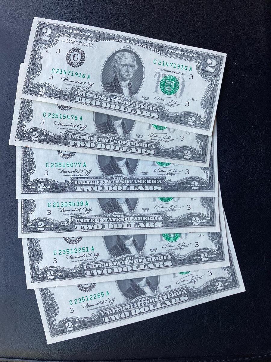 Collection of (6) 1976 $2 Federal reserve notes Lot A32