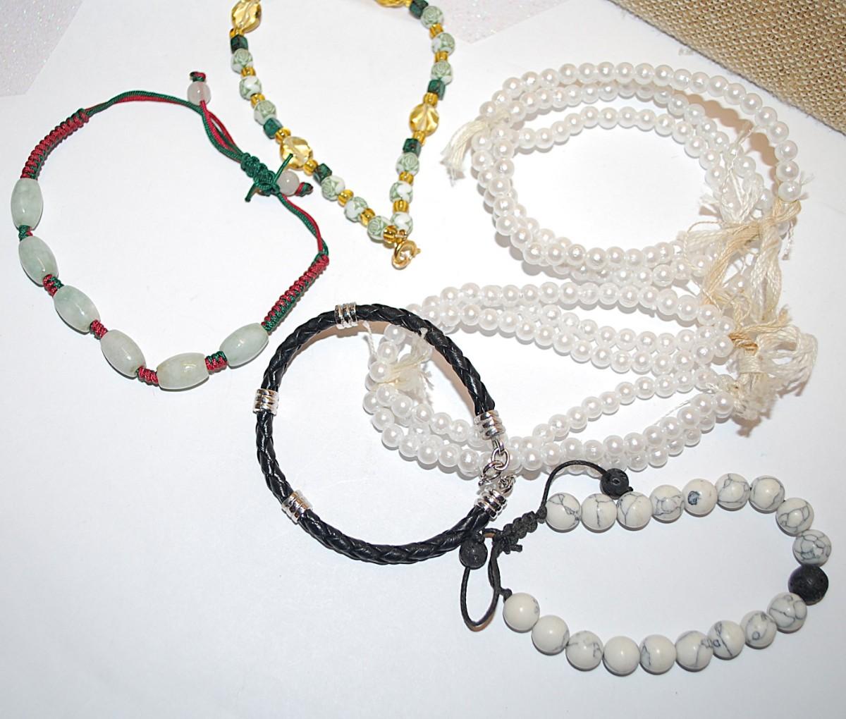 Collection of 6 Assorted BRACELETS (-2½"+ Opening) with Faux Pearls, Graphic Beads and All Non-Stretch