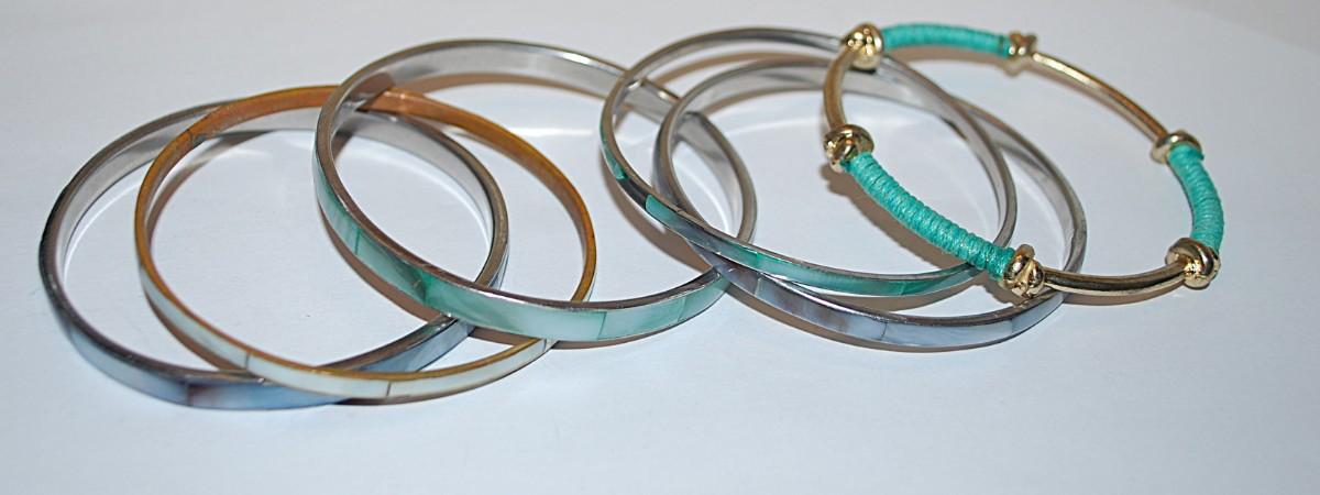 Collection of 6 "Mother-of-Pearl" Style BANGLE BRACELETS (-2½"+ Opening) in Blues & Grays