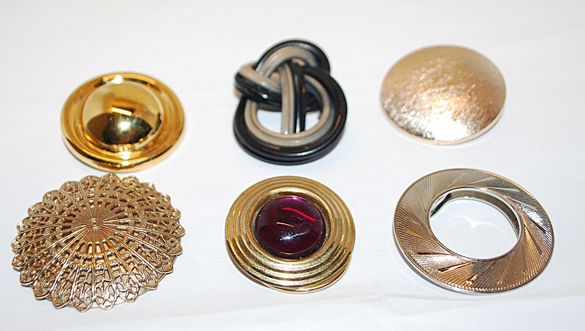 Collection of 6 SCARF/LAPEL CLIPS in Gold, Silver and Acrylic Tones
