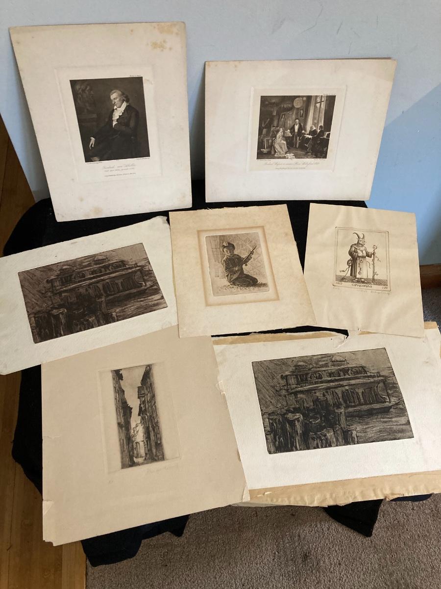 Collection of 7 Antique Engravings with some Hand Signed