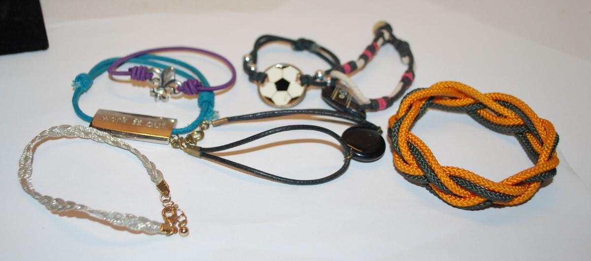 Collection of 7 Assorted BRACELETS (-2½"+ Opening) with Soccer Ball and Orange and Black Twisted Cord