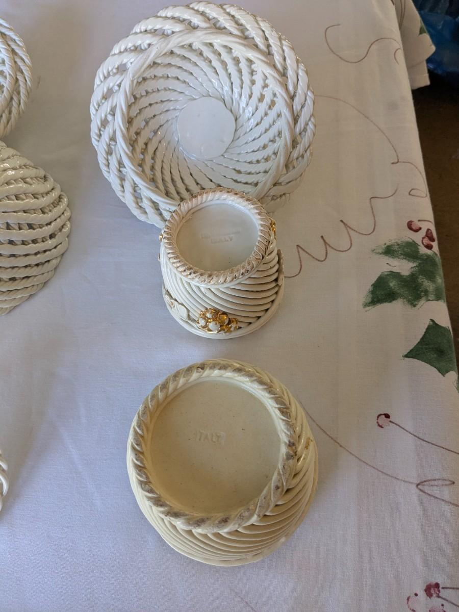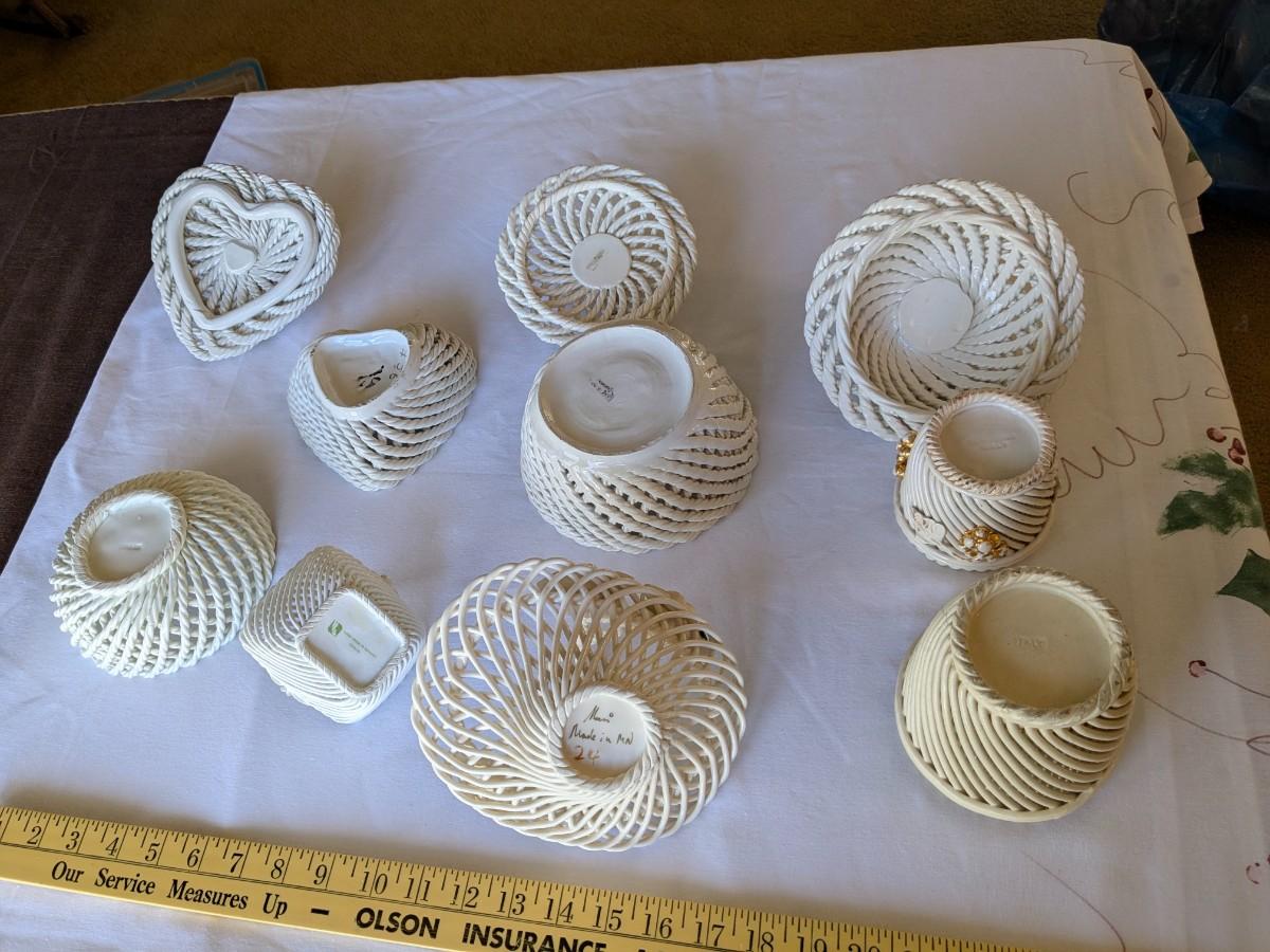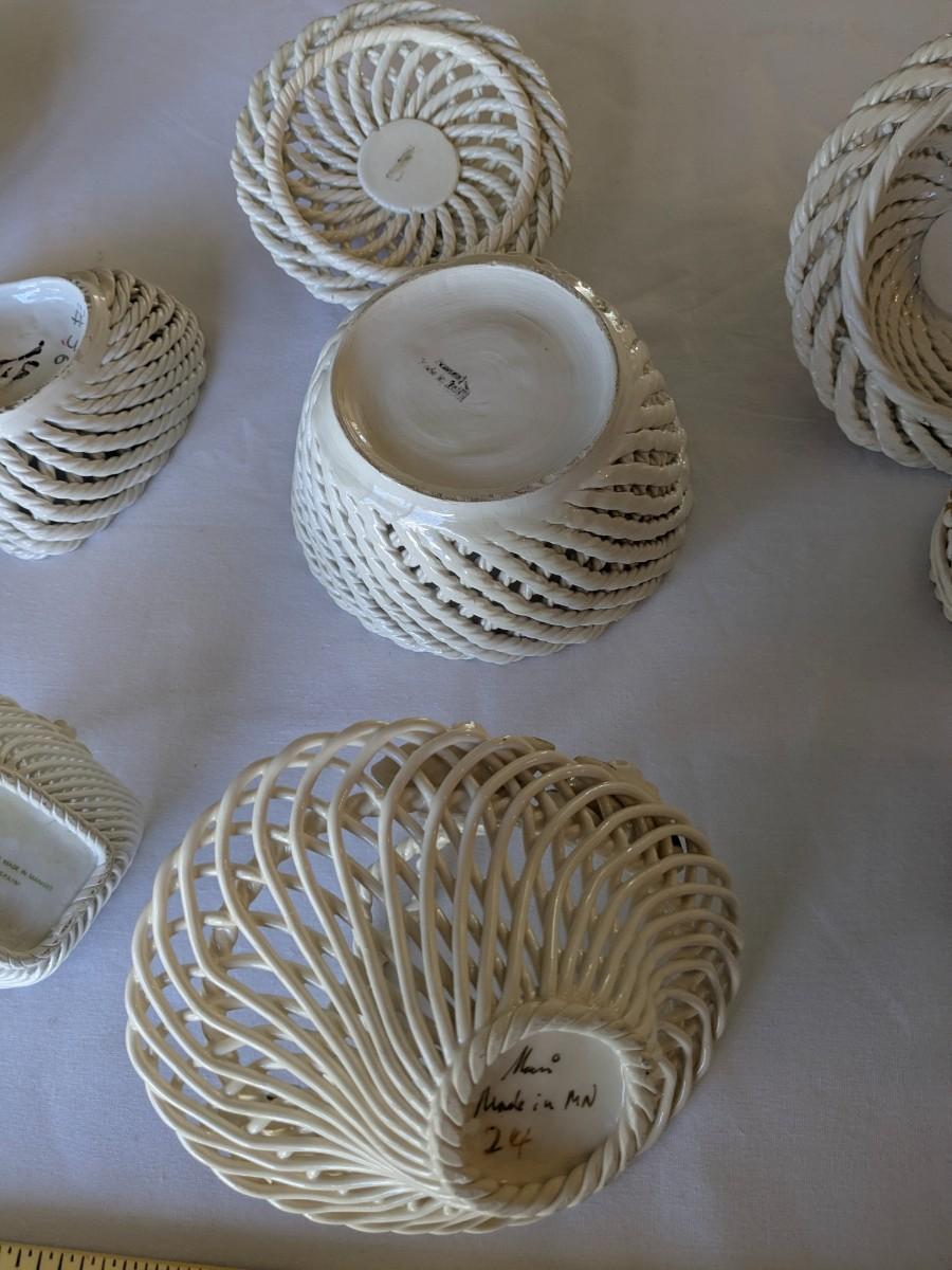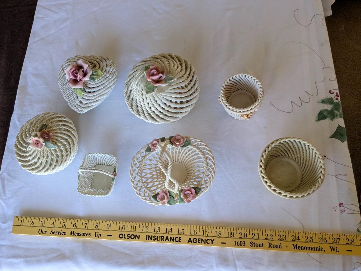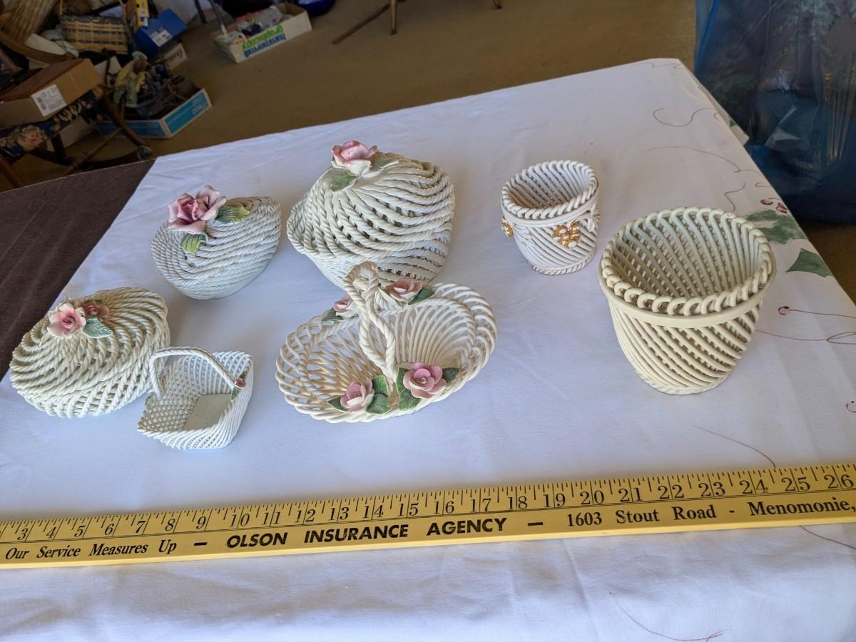 Collection of 7 Vintage Porcelain Woven Baskets
