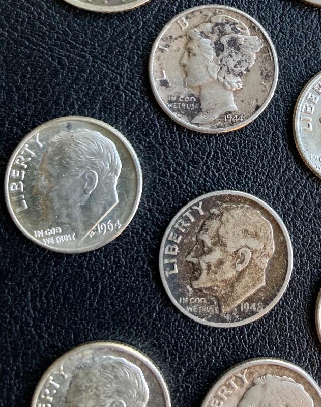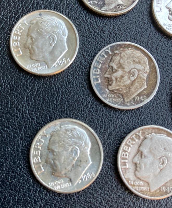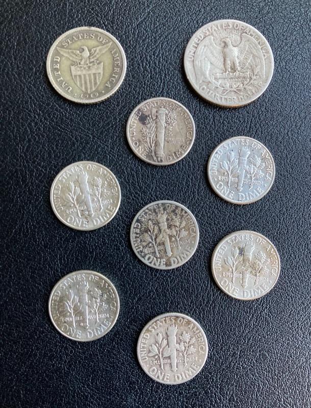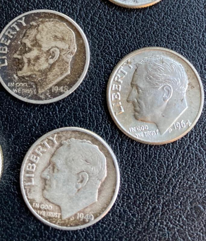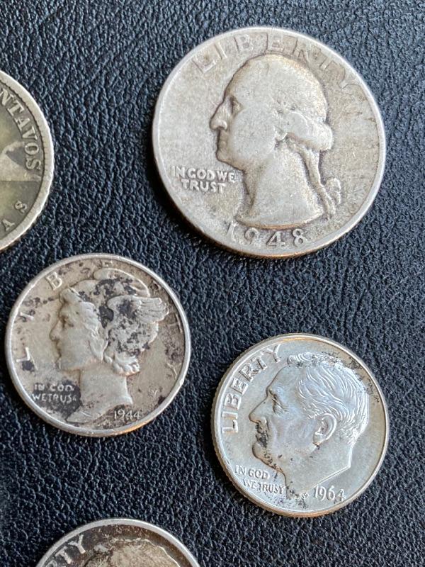 Also includes a 1948 quarter, three 1964-D dimes, a 1948 dime, a 1949 dime and a 1964-D dime. Nice assortment!