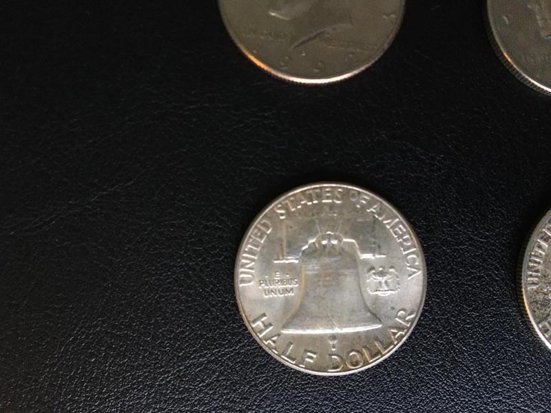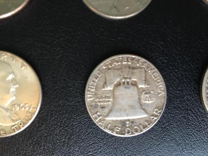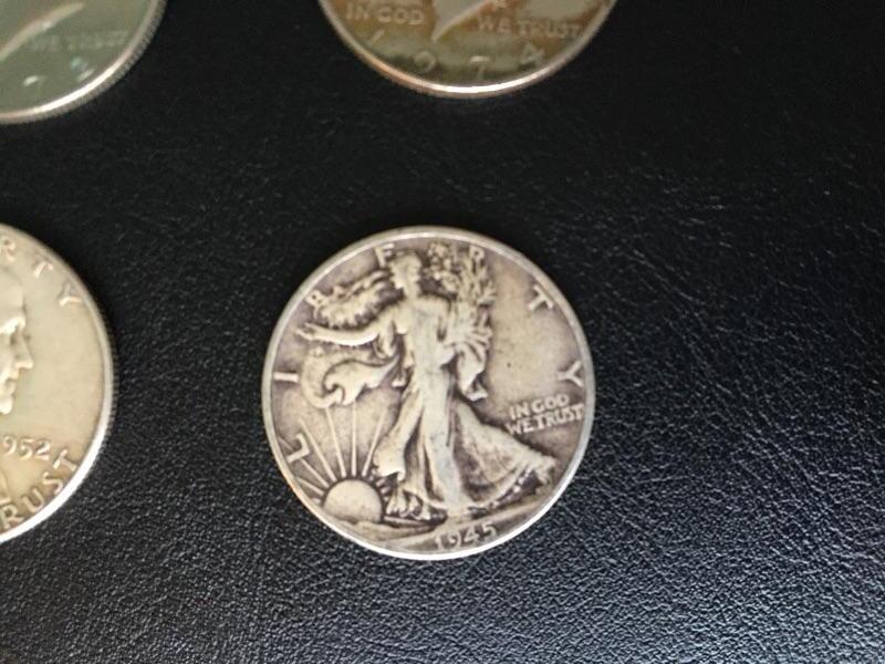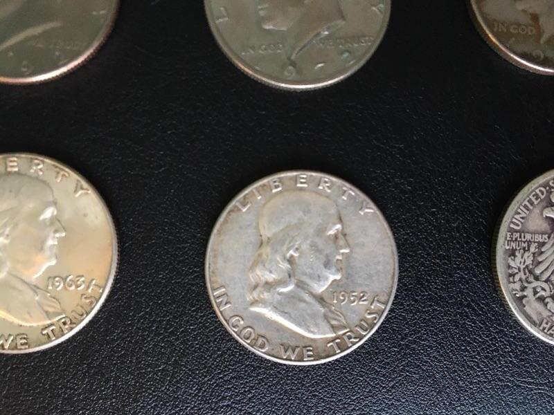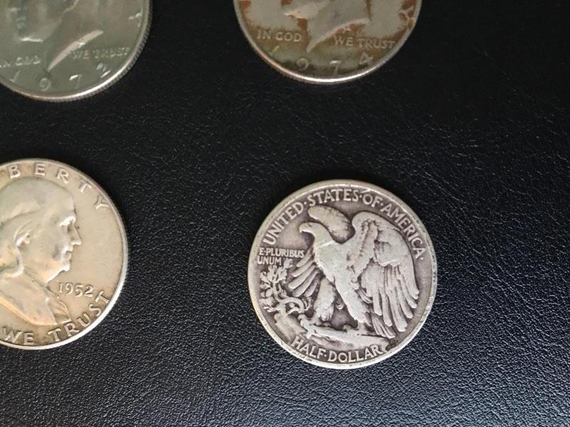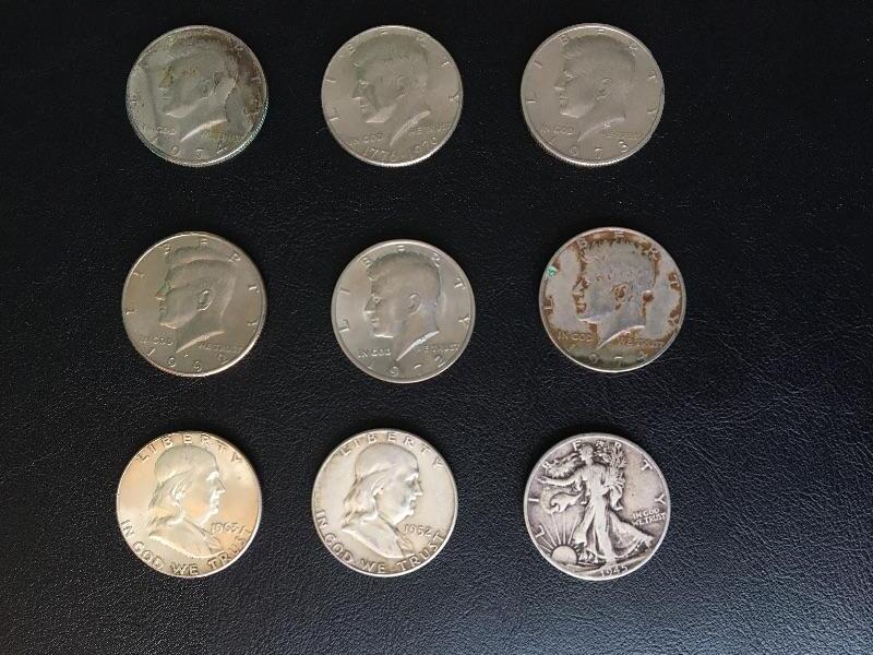 Collection of 9 Vintage Half Dollar Coins with Franklin and Walking Liberty